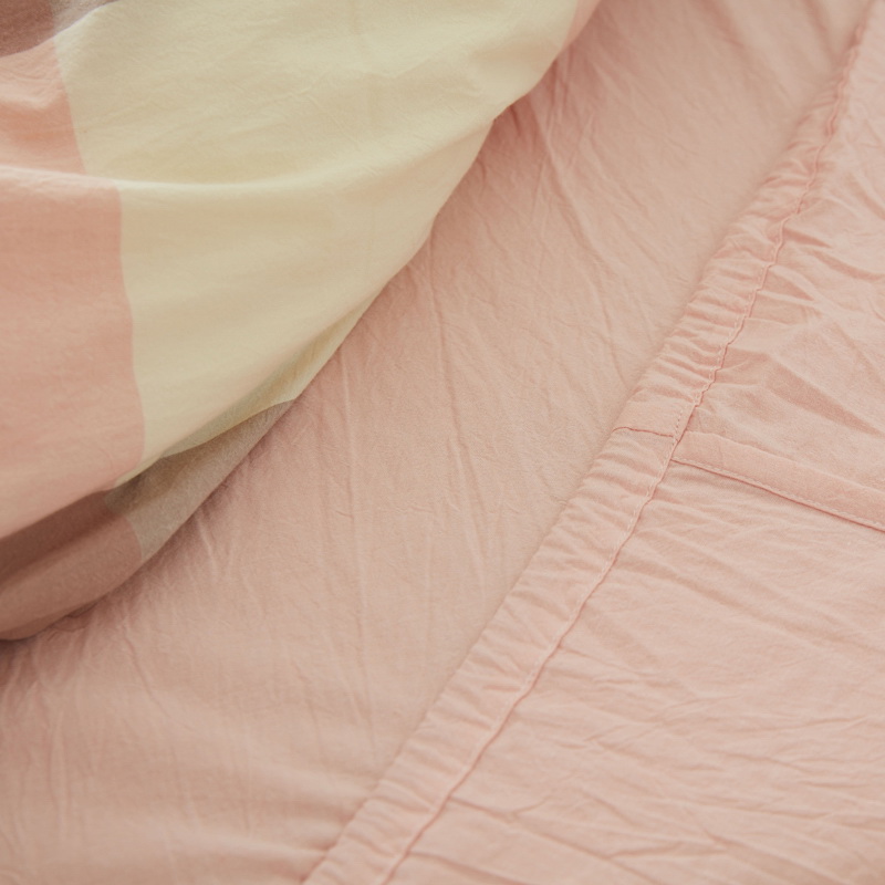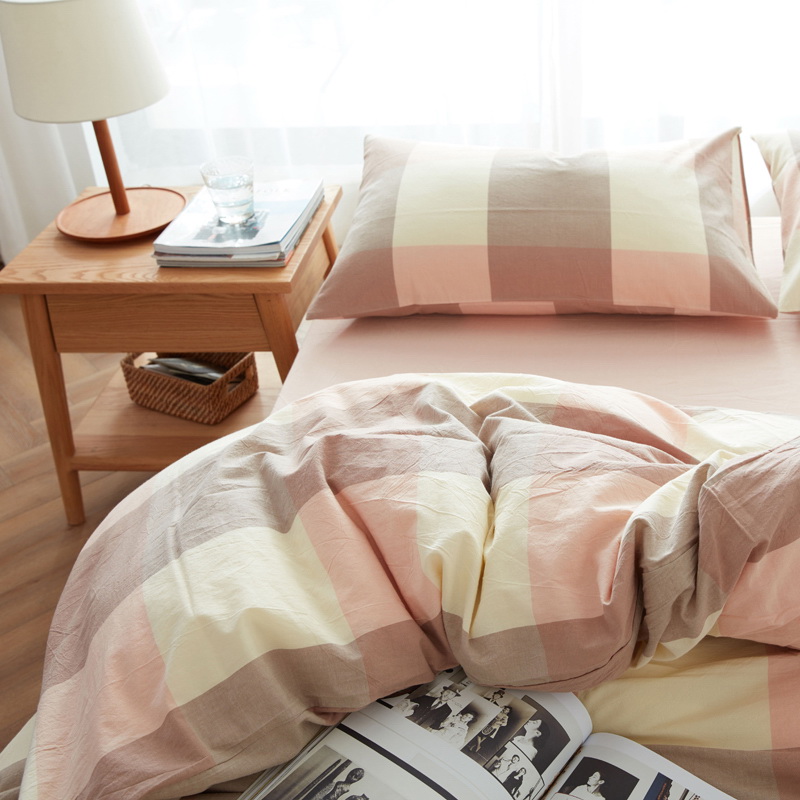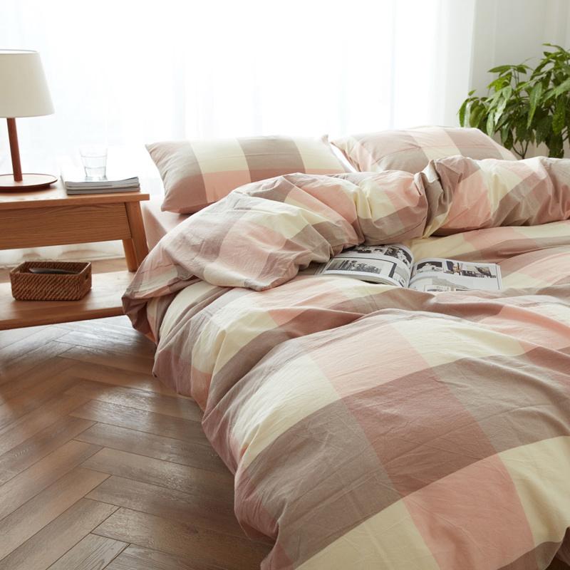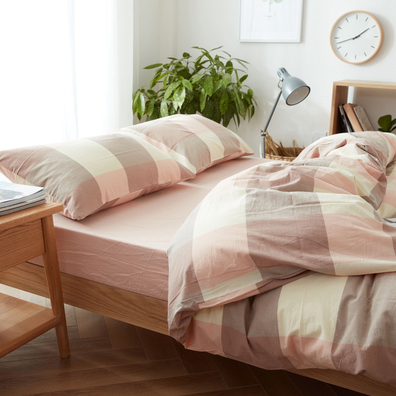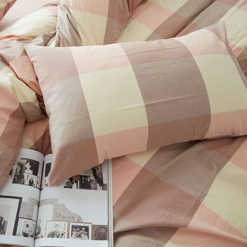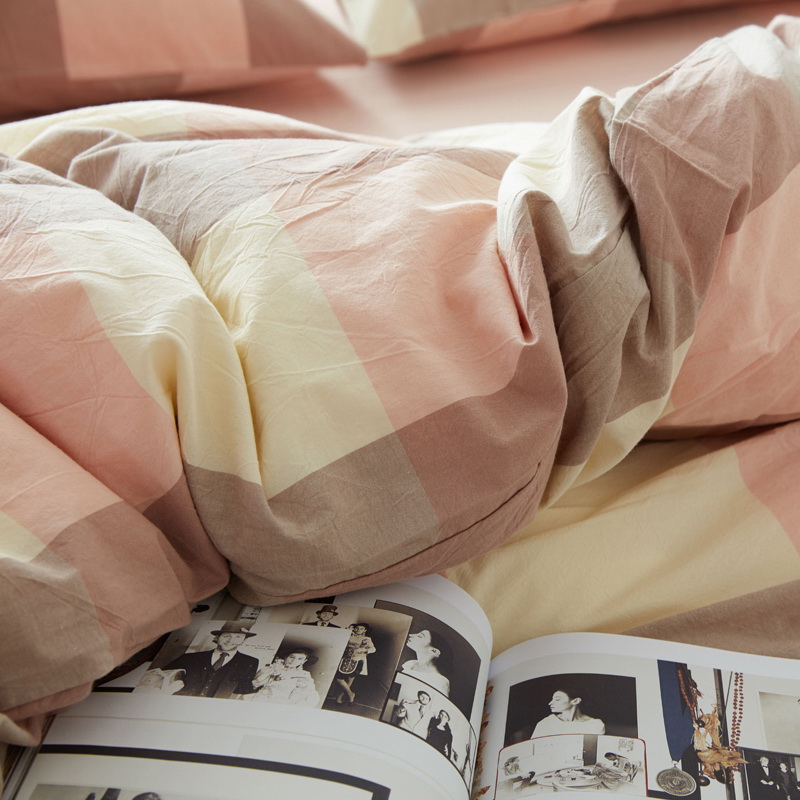 以极简美学诠释生活本真,采用优质全棉,通过色织水洗工艺打造柔软贴肤、自然褶皱的慵懒质感。低饱和中性色调温柔适配多种空间,活性印染技术。越洗越软的特性伴随时光沉淀,赋予睡眠温柔而长久的陪伴。