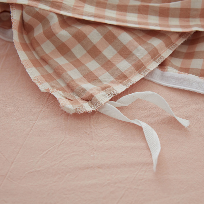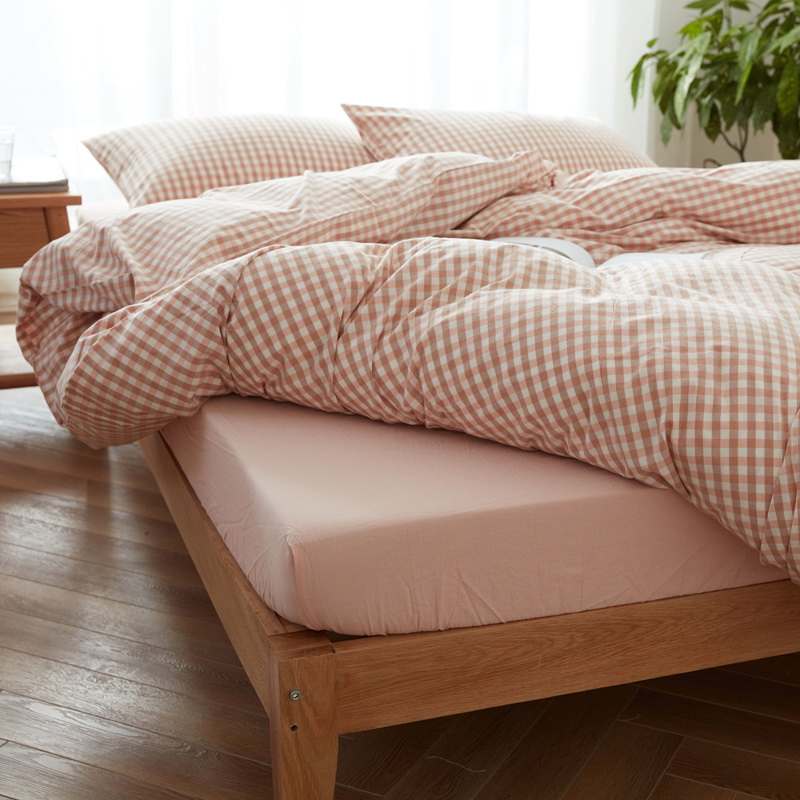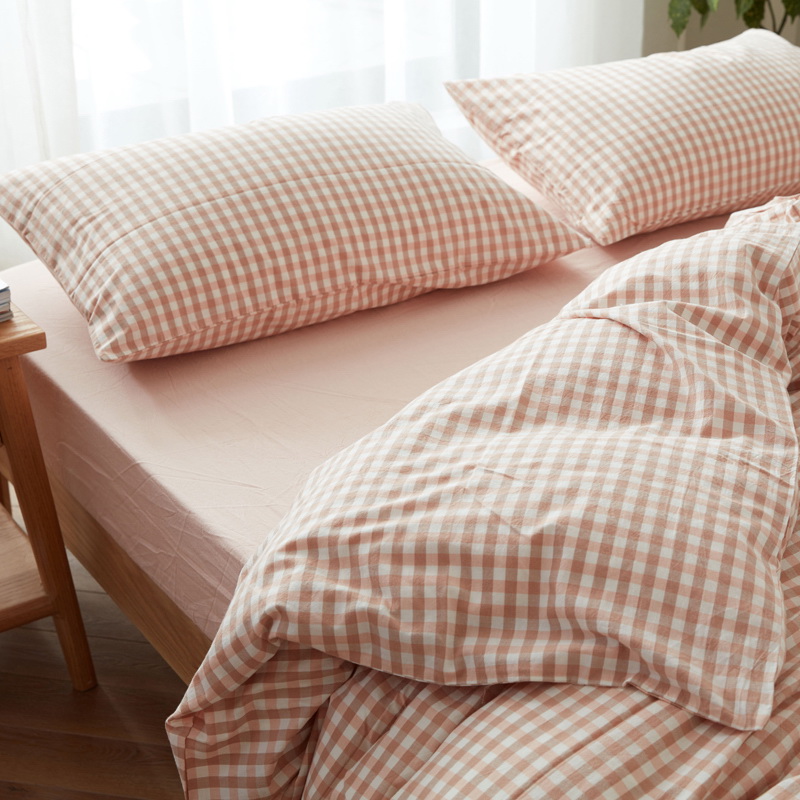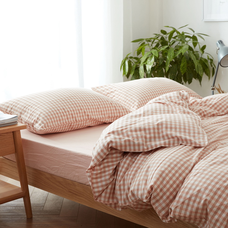 以极简美学诠释生活本真,采用优质全棉,通过色织水洗工艺打造柔软贴肤、自然褶皱的慵懒质感。低饱和中性色调温柔适配多种空间,活性印染技术。越洗越软的特性伴随时光沉淀,赋予睡眠温柔而长久的陪伴。