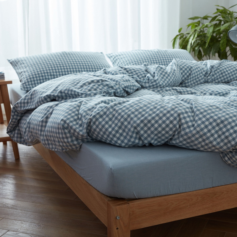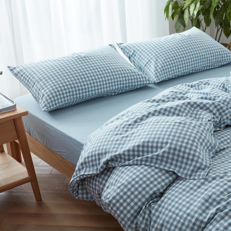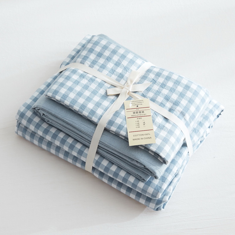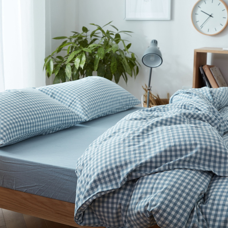 日式全棉色织水洗棉套件_格子系列