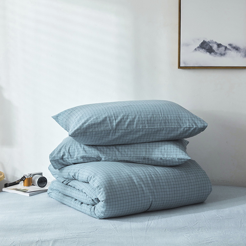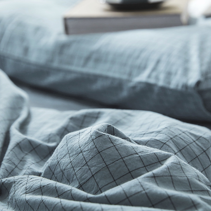 以极简美学诠释生活本真,采用优质全棉,通过色织水洗工艺打造柔软贴肤、自然褶皱的慵懒质感。低饱和中性色调温柔适配多种空间,活性印染技术。越洗越软的特性伴随时光沉淀,赋予睡眠温柔而长久的陪伴。
