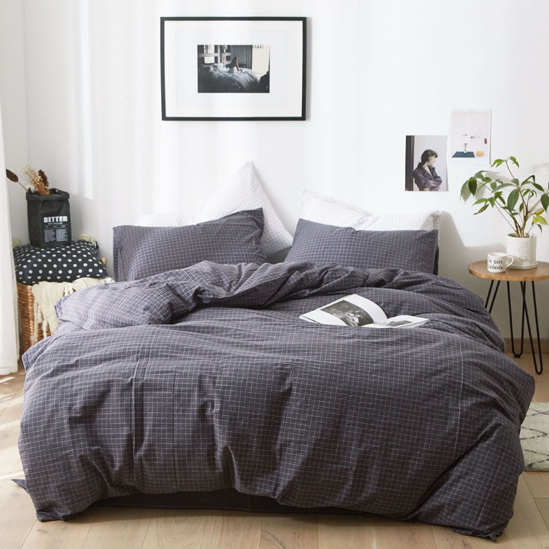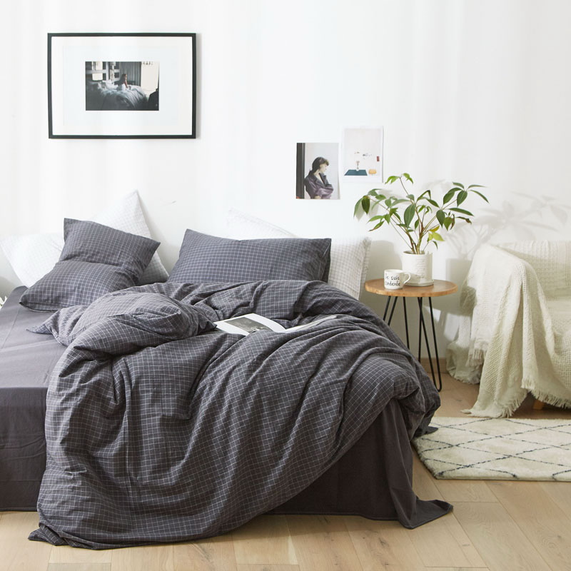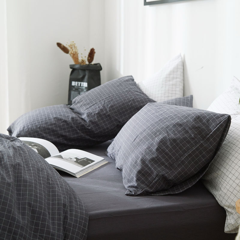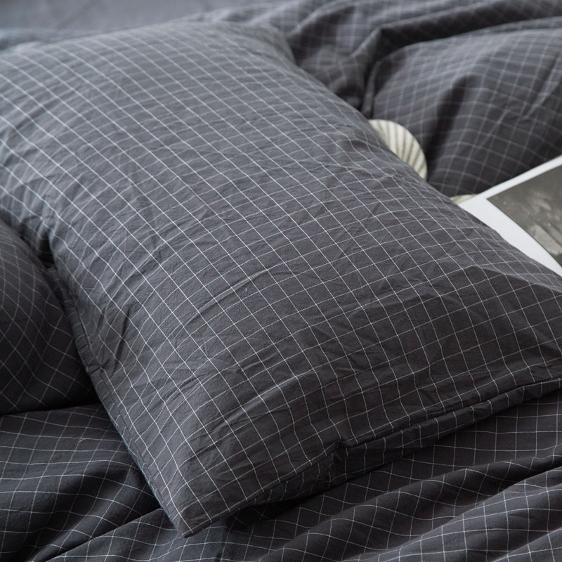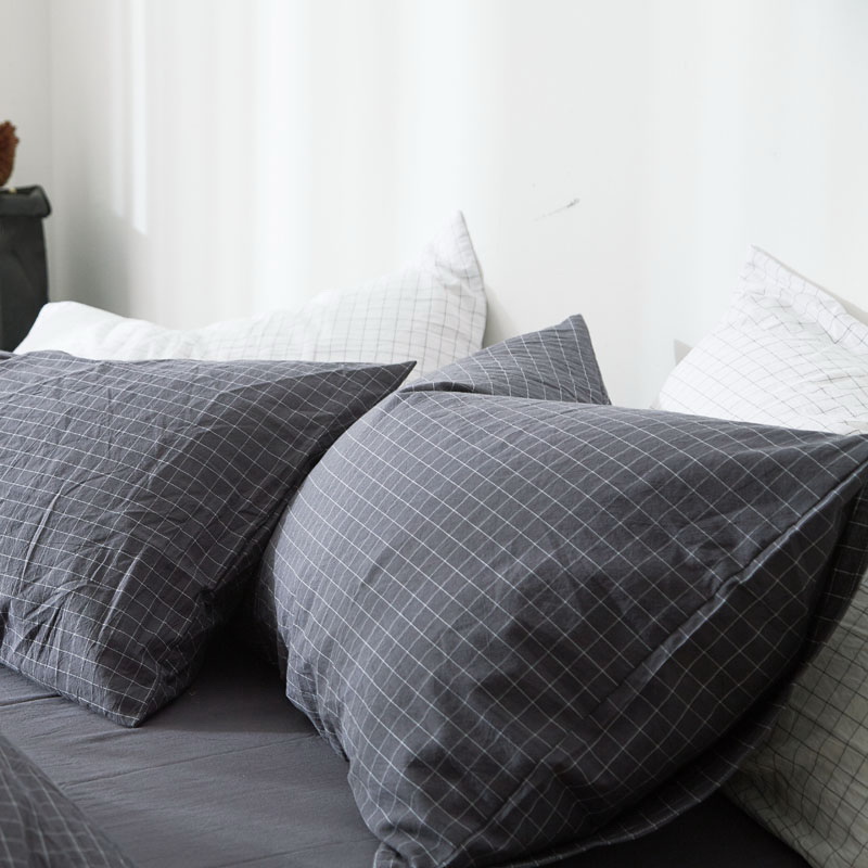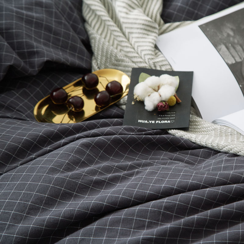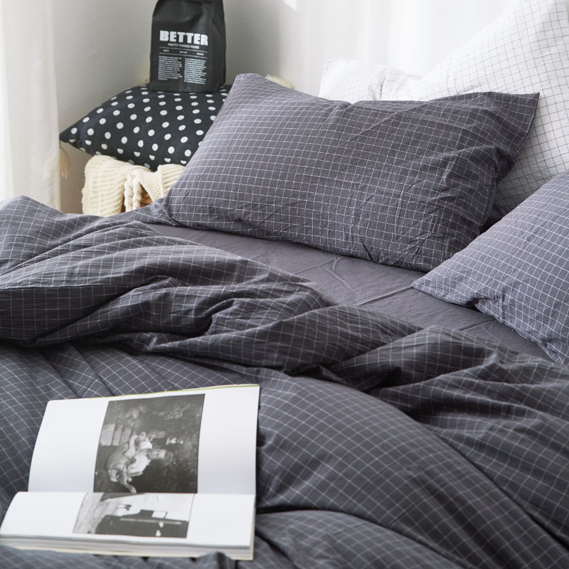 日式全棉色织水洗棉套件_格子系列