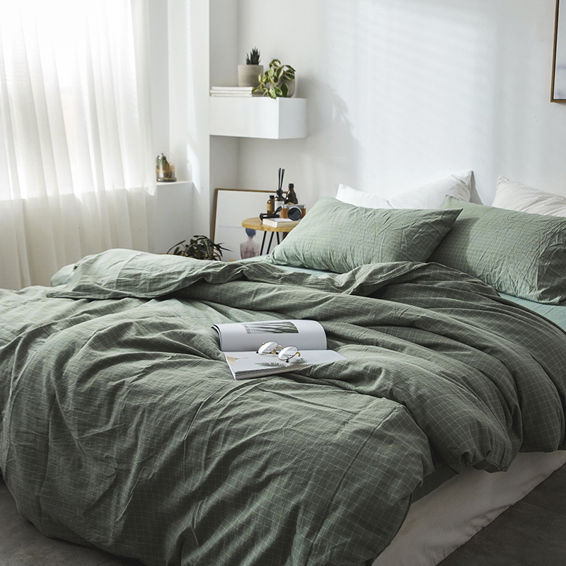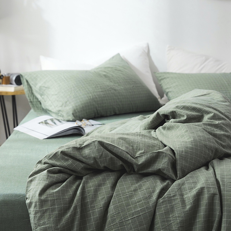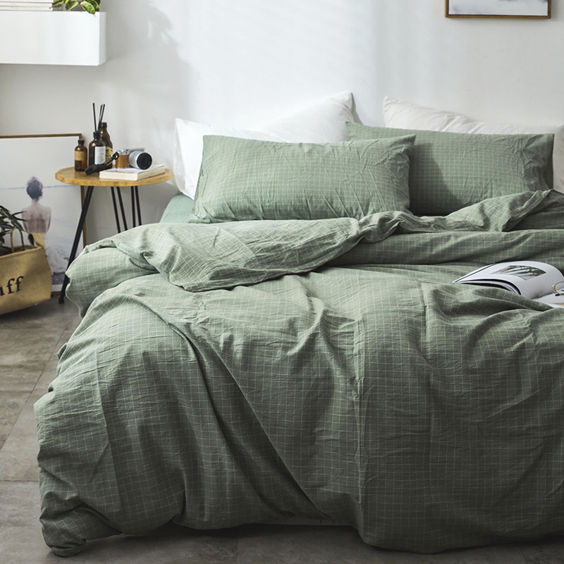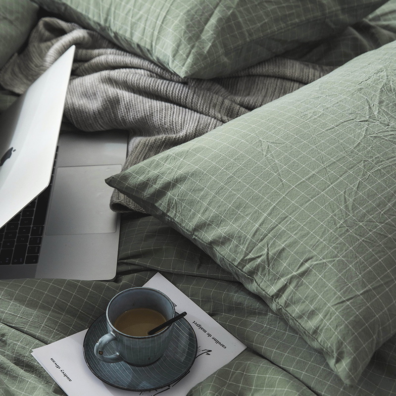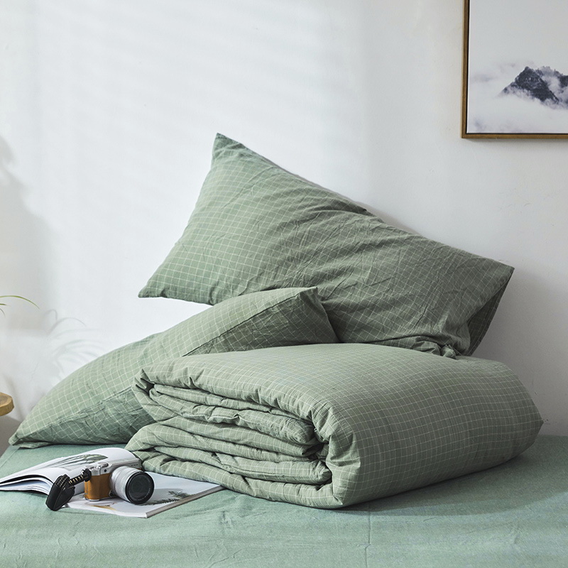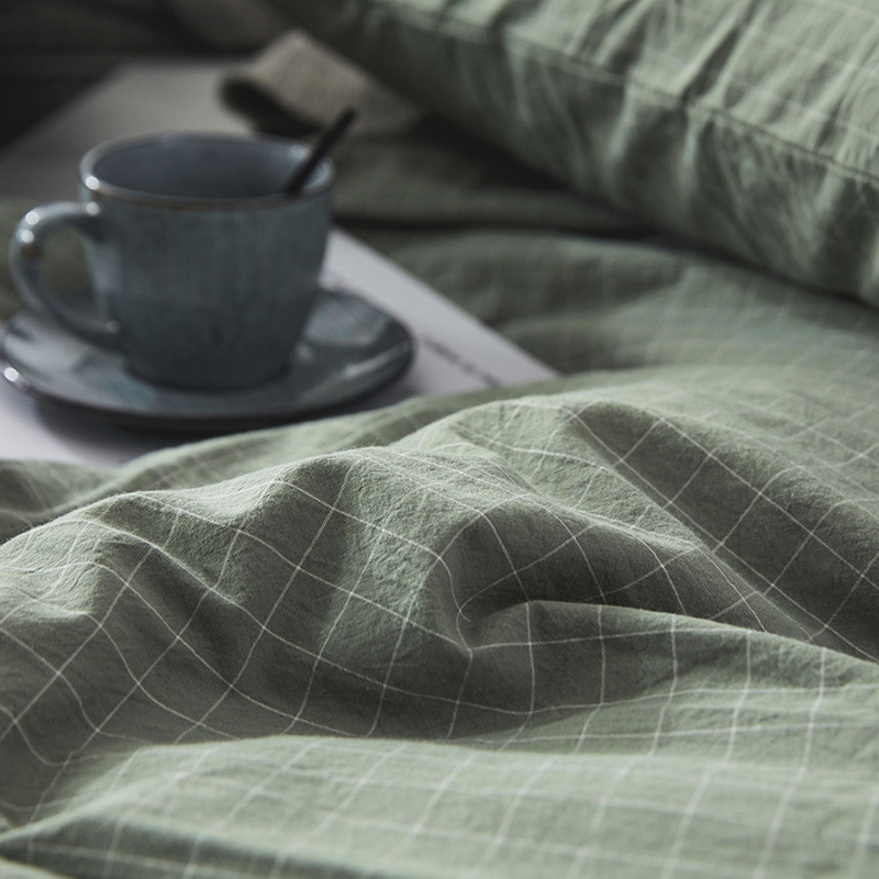 日式全棉色织水洗棉套件_格子系列