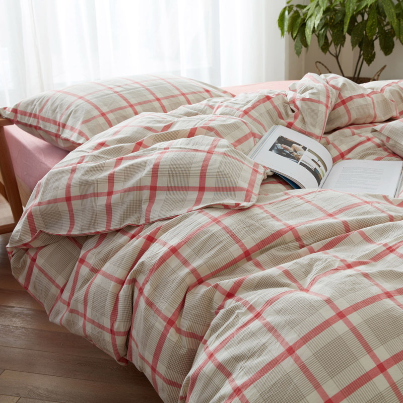 以极简美学诠释生活本真,采用优质全棉,通过色织水洗工艺打造柔软贴肤、自然褶皱的慵懒质感。低饱和中性色调温柔适配多种空间,活性印染技术。越洗越软的特性伴随时光沉淀,赋予睡眠温柔而长久的陪伴。