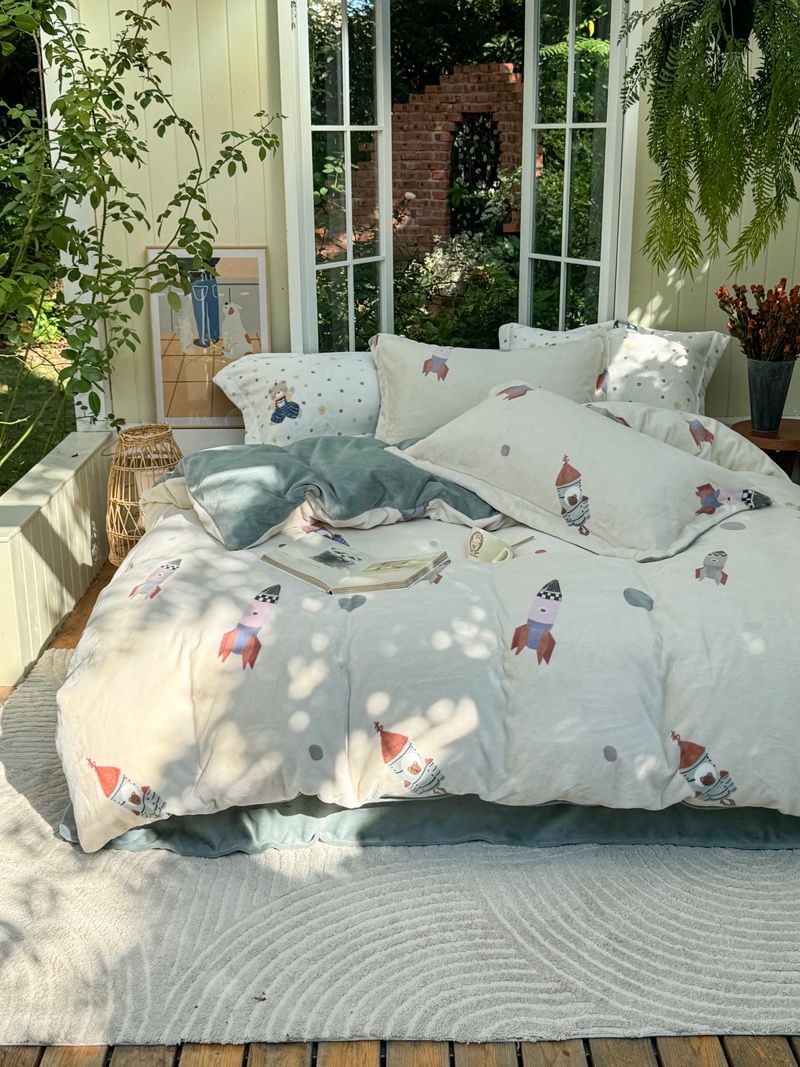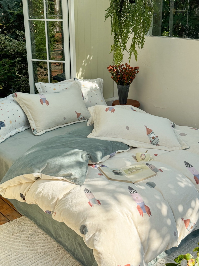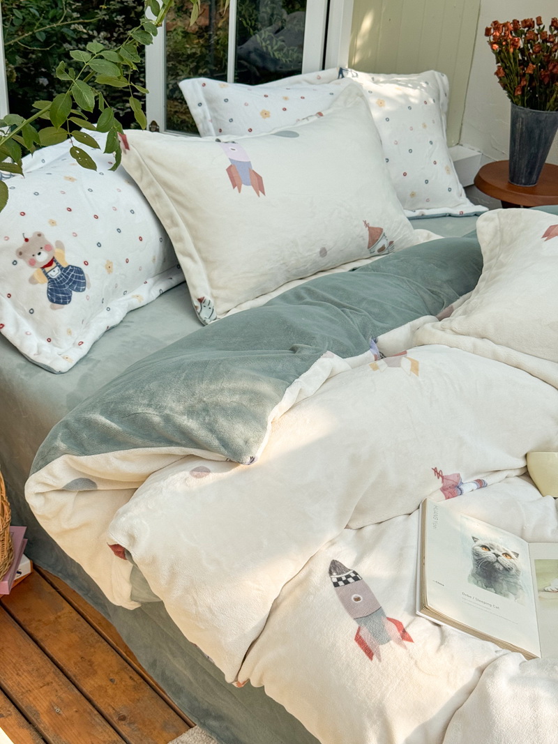 臻棉绒2025升级版本云丝绒印花四件套,小清新系列新品上市!把云端的柔软搬进卧室,裹住整夜温暖,细腻绒面触肤即暖,精致印花藏进梦境,连翻身都是与温柔的轻语相拥,锁温透气,绒面丝滑不粘肤。