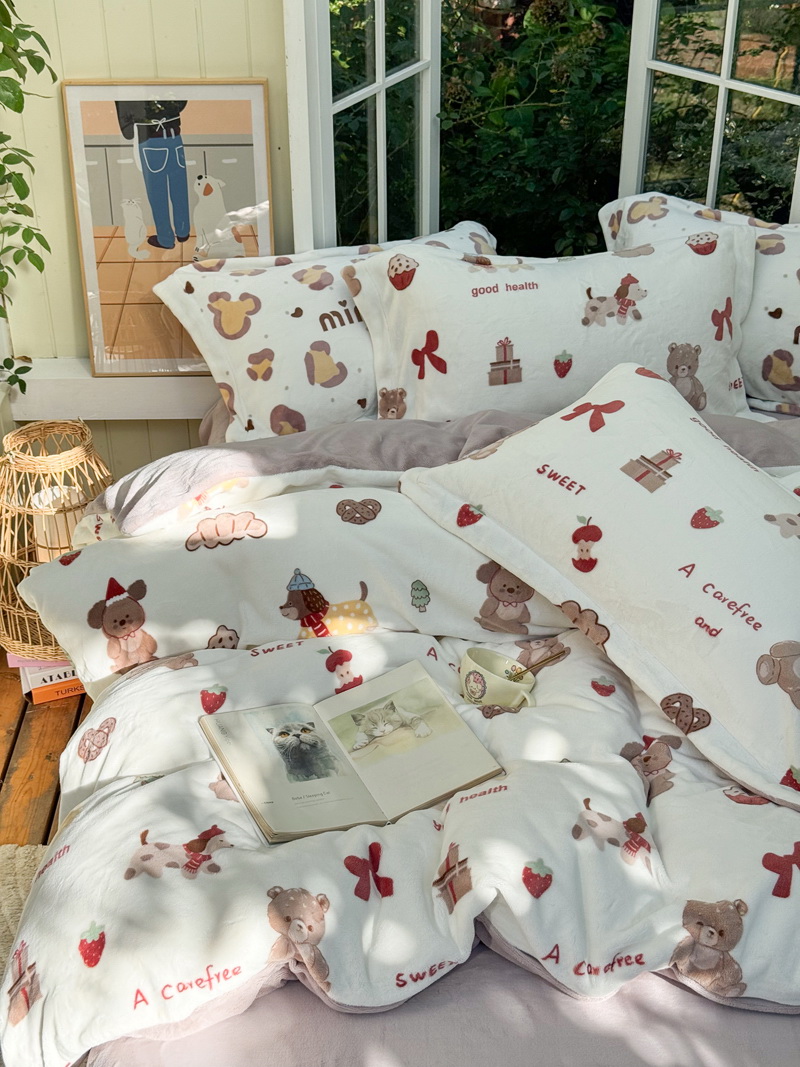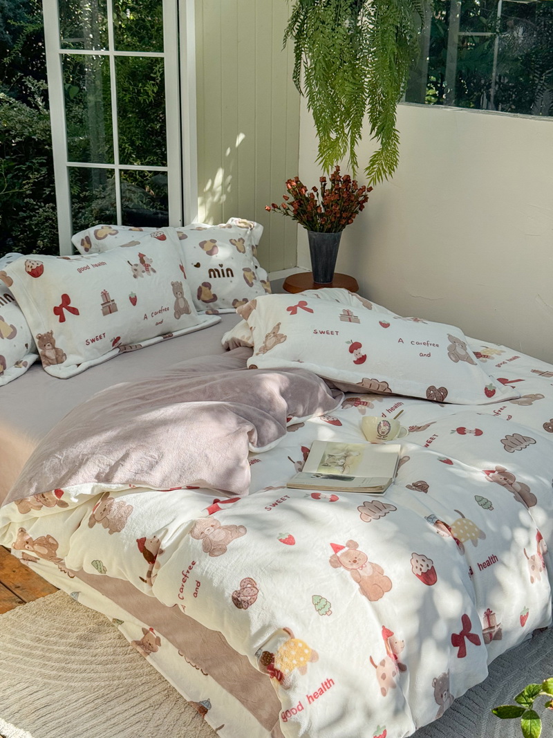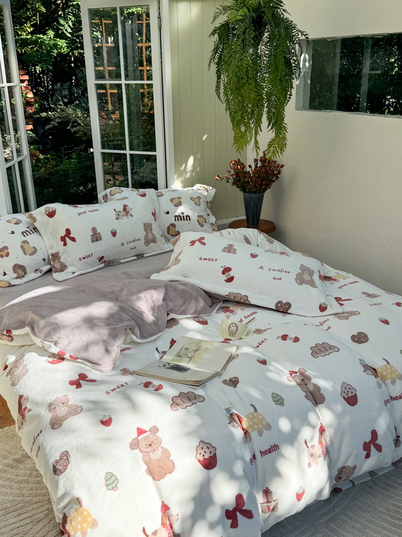 臻棉绒2025升级版本云丝绒印花四件套,小清新系列新品上市!把云端的柔软搬进卧室,裹住整夜温暖,细腻绒面触肤即暖,精致印花藏进梦境,连翻身都是与温柔的轻语相拥,锁温透气,绒面丝滑不粘肤。