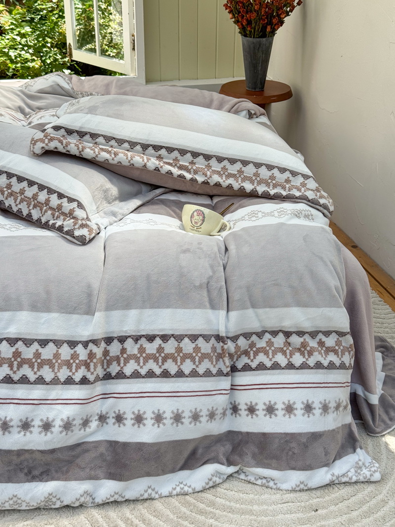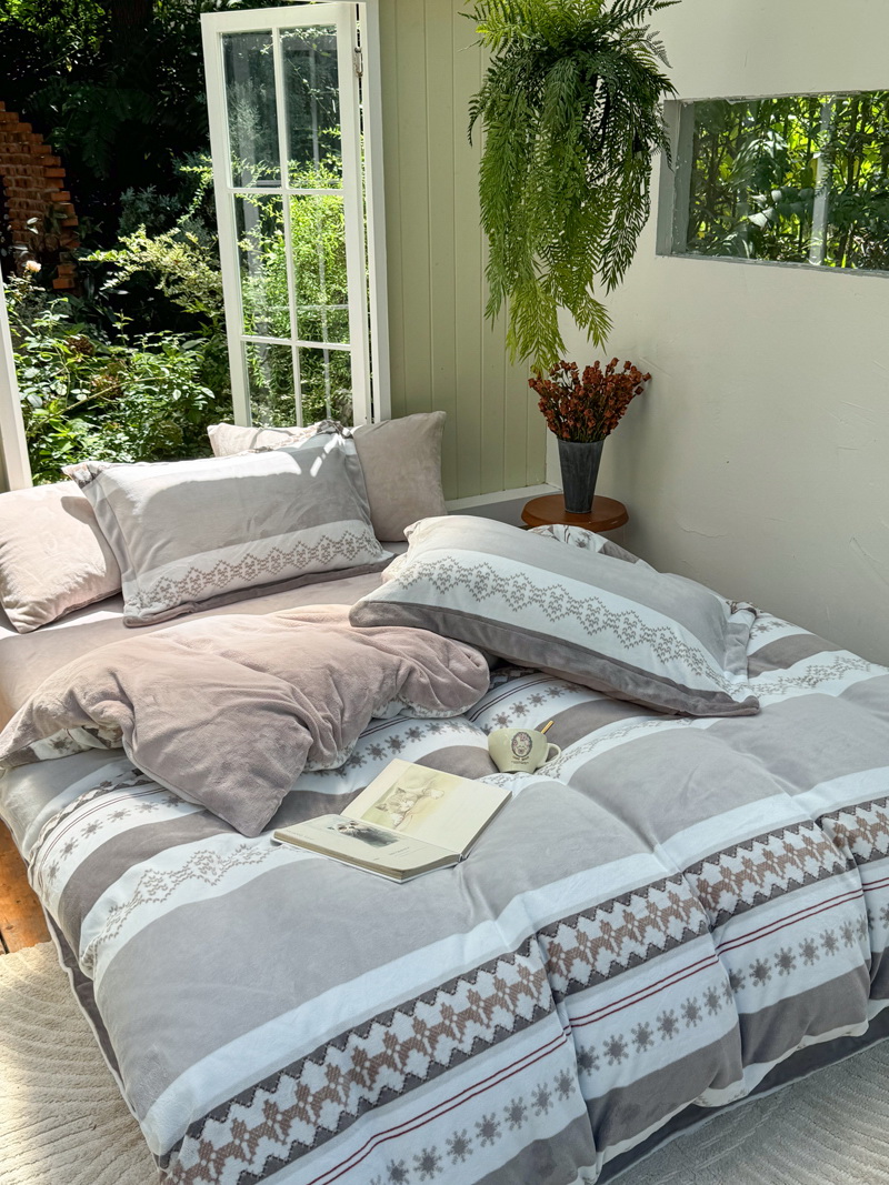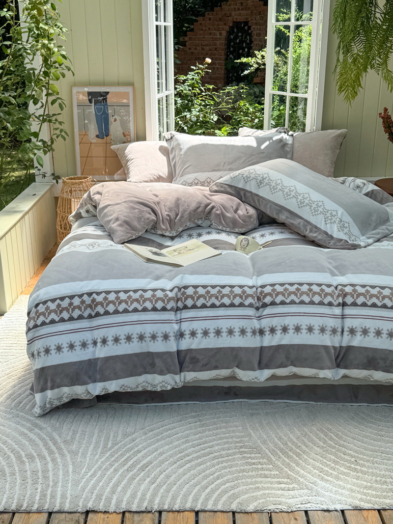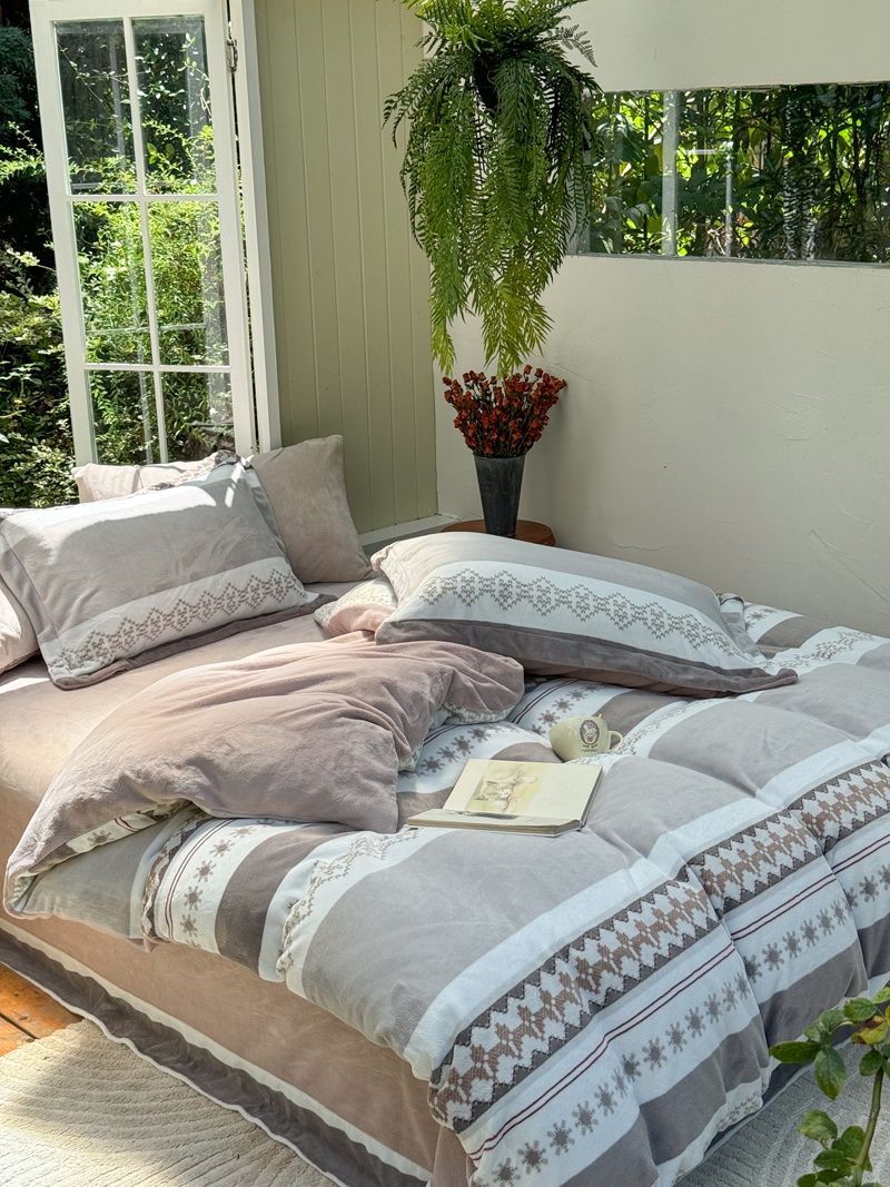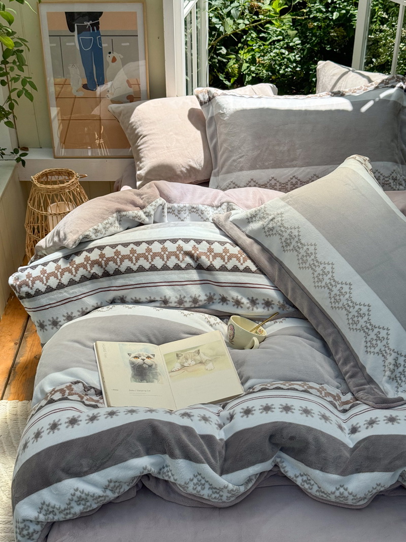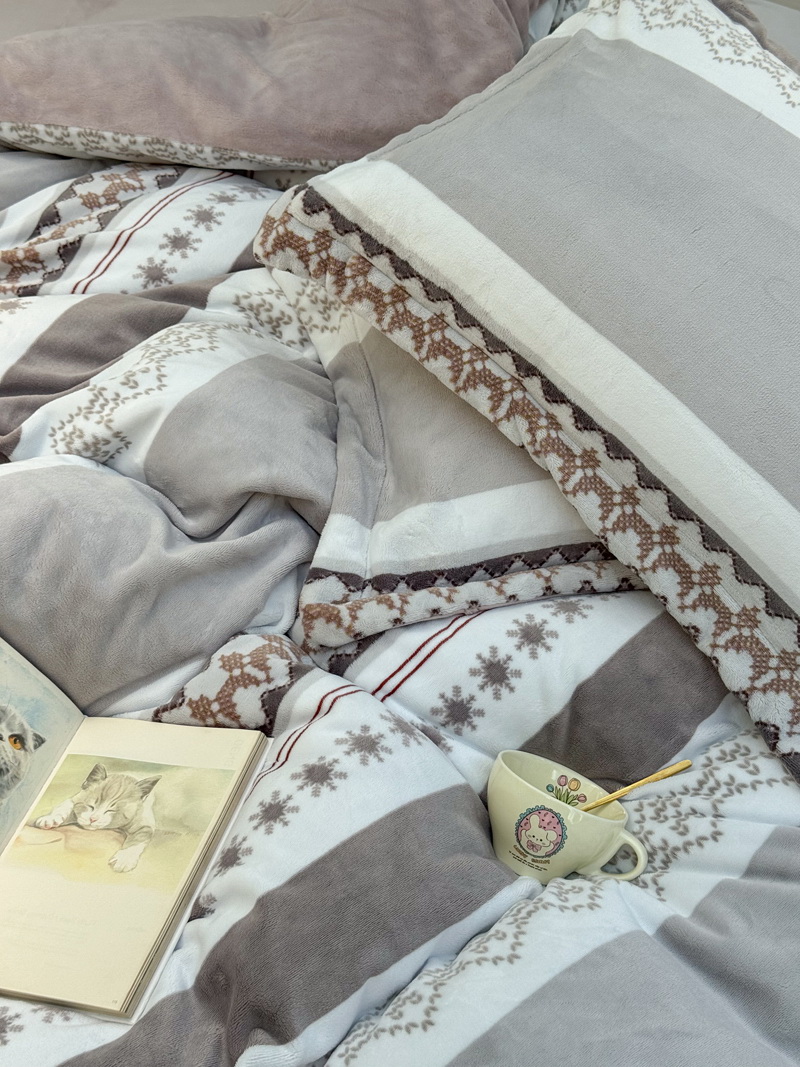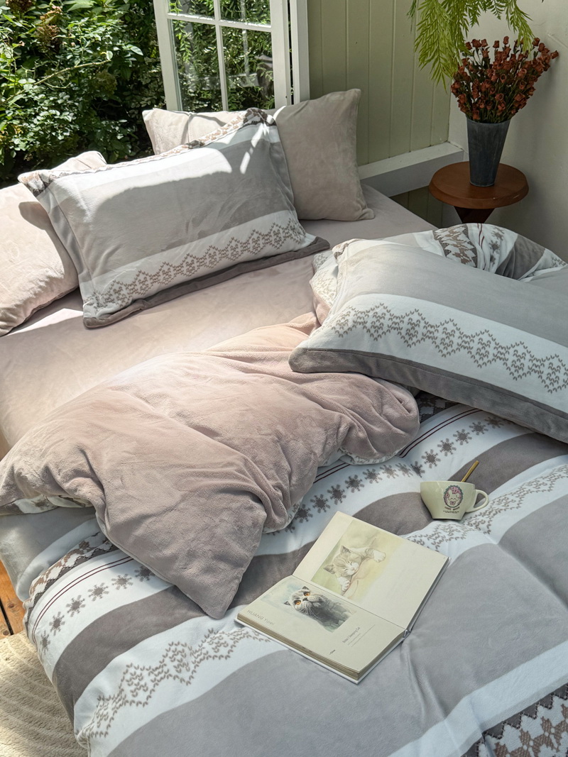 臻棉绒2025升级版本云丝绒印花四件套,小清新系列新品上市!把云端的柔软搬进卧室,裹住整夜温暖,细腻绒面触肤即暖,精致印花藏进梦境,连翻身都是与温柔的轻语相拥,锁温透气,绒面丝滑不粘肤。