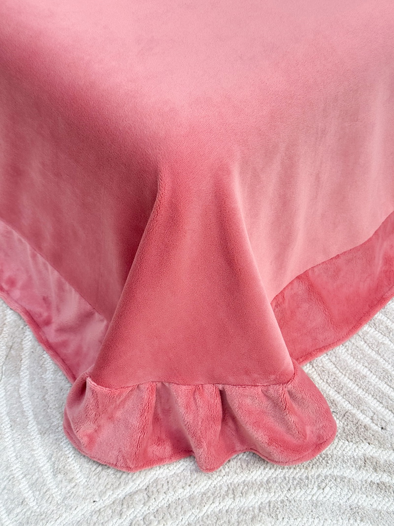 工艺:被套暗合工艺,床单圆角荷叶边,枕套宽边压线