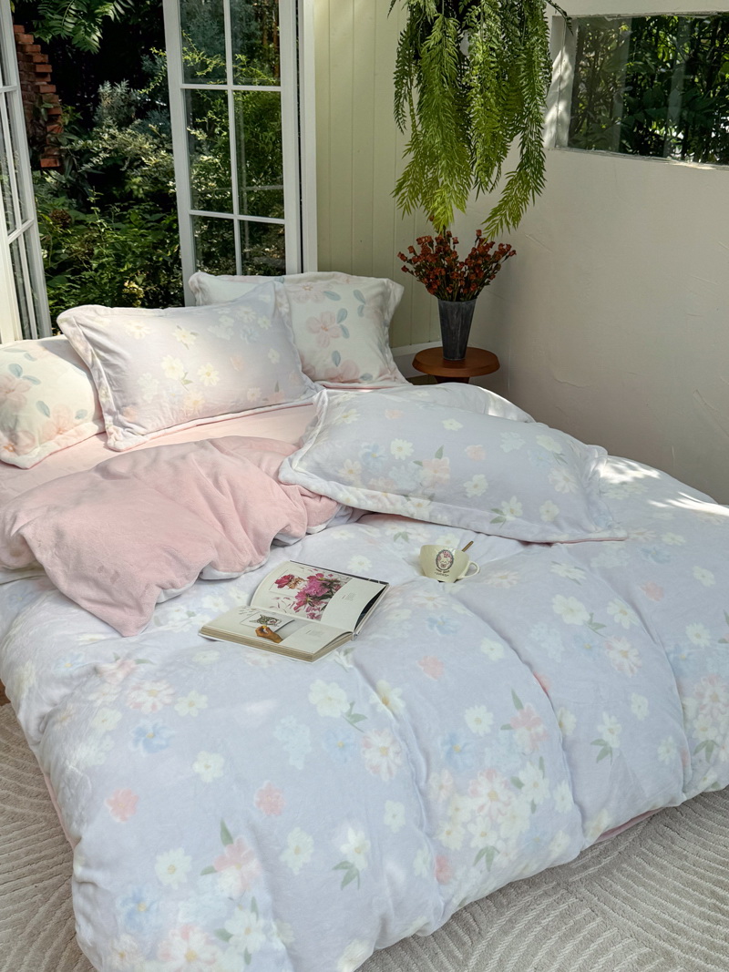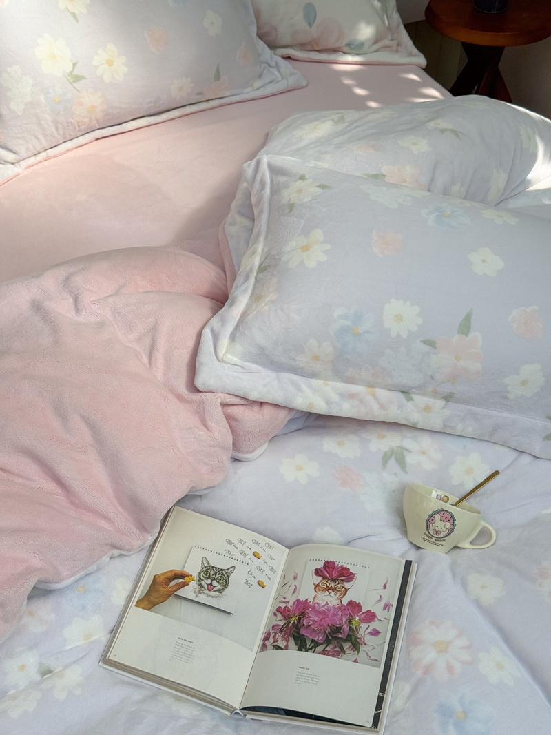 臻棉绒2025升级版本云丝绒印花四件套,小清新系列新品上市!把云端的柔软搬进卧室,裹住整夜温暖,细腻绒面触肤即暖,精致印花藏进梦境,连翻身都是与温柔的轻语相拥,锁温透气,绒面丝滑不粘肤。