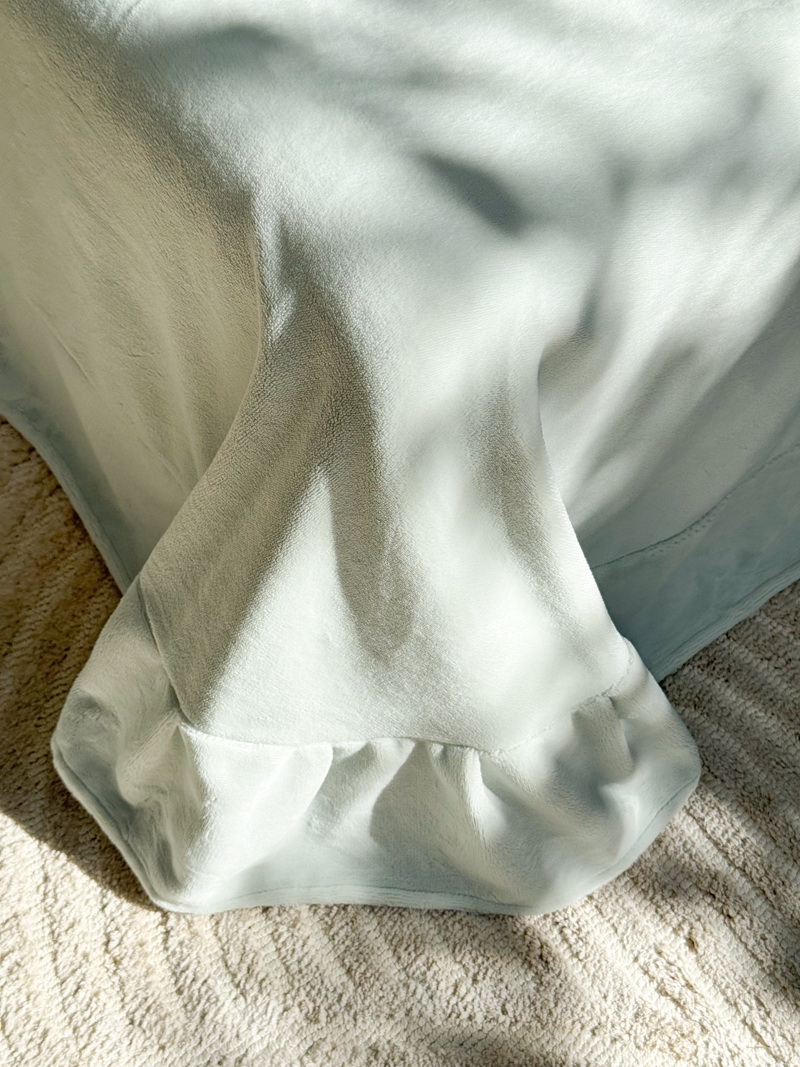 面料:240克蚕丝绒高克重面料,升级运用进口柔软剂,手感更丰盈丝滑,采用德国进口导电丝,赶走静电对皮肤刺激。