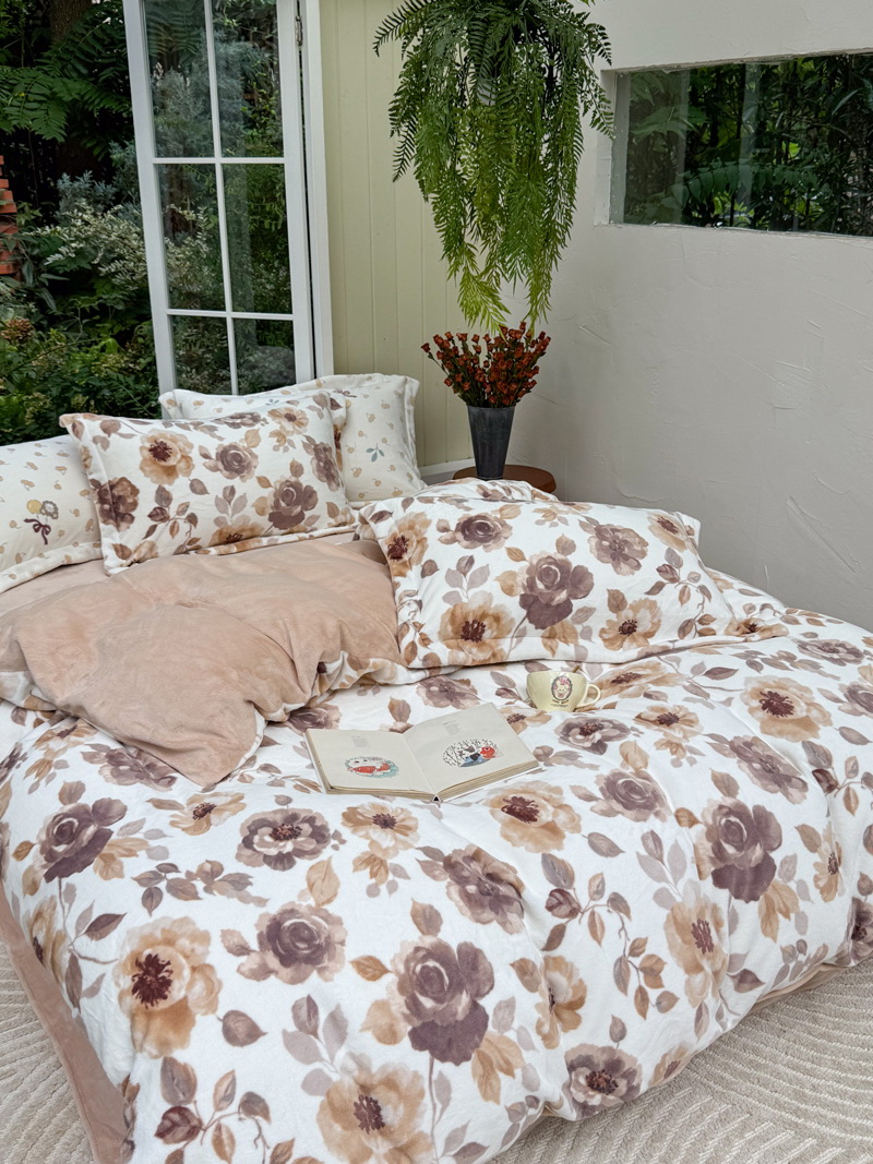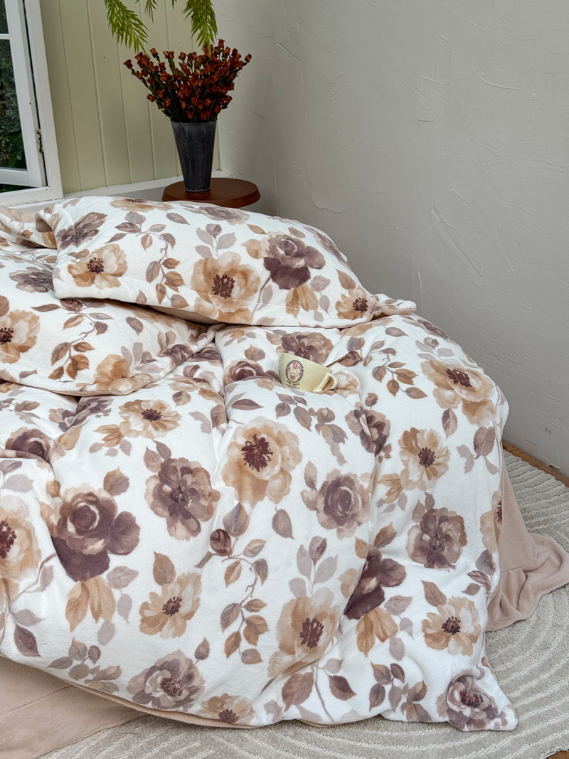 臻棉绒2025升级版本云丝绒印花四件套,小清新系列新品上市!把云端的柔软搬进卧室,裹住整夜温暖,细腻绒面触肤即暖,精致印花藏进梦境,连翻身都是与温柔的轻语相拥,锁温透气,绒面丝滑不粘肤。