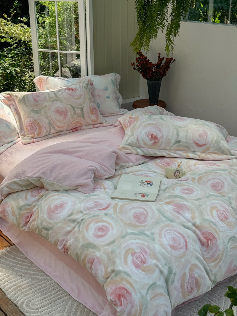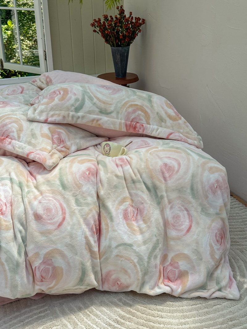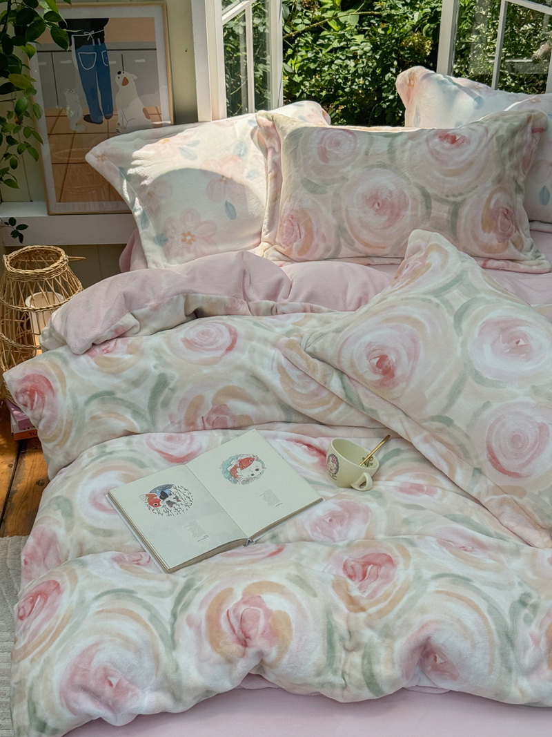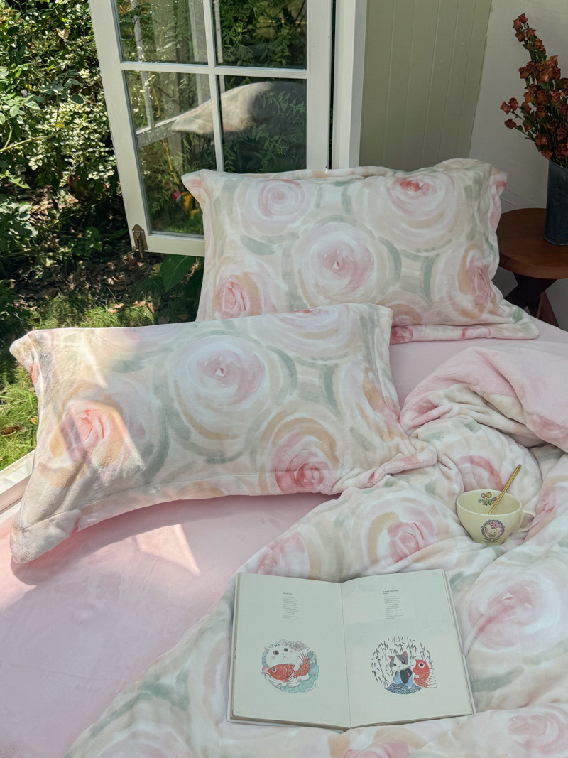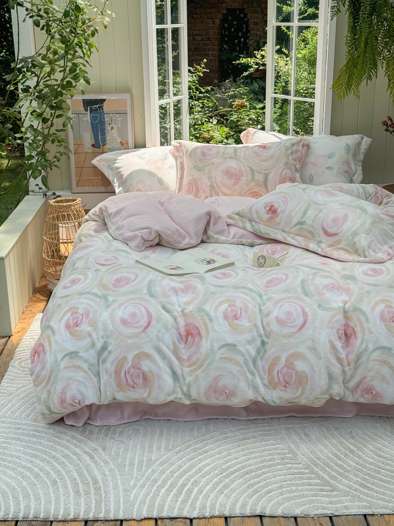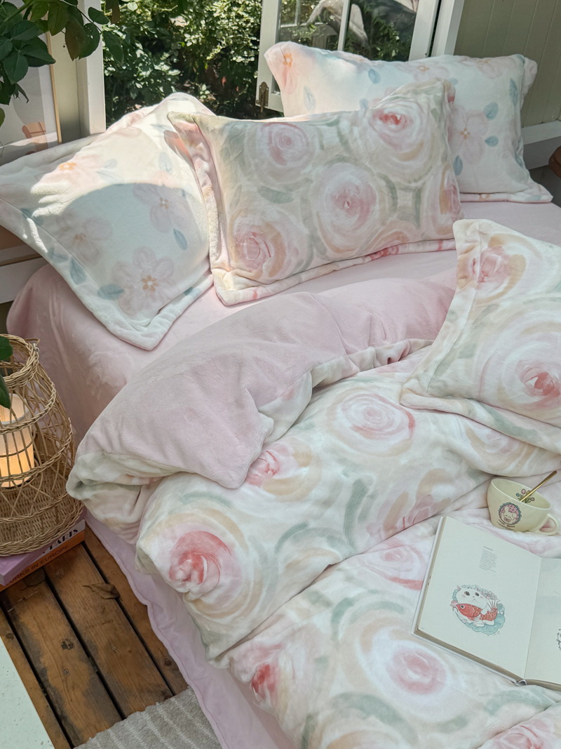 臻棉绒2025升级版本云丝绒印花四件套,小清新系列新品上市!把云端的柔软搬进卧室,裹住整夜温暖,细腻绒面触肤即暖,精致印花藏进梦境,连翻身都是与温柔的轻语相拥,锁温透气,绒面丝滑不粘肤。