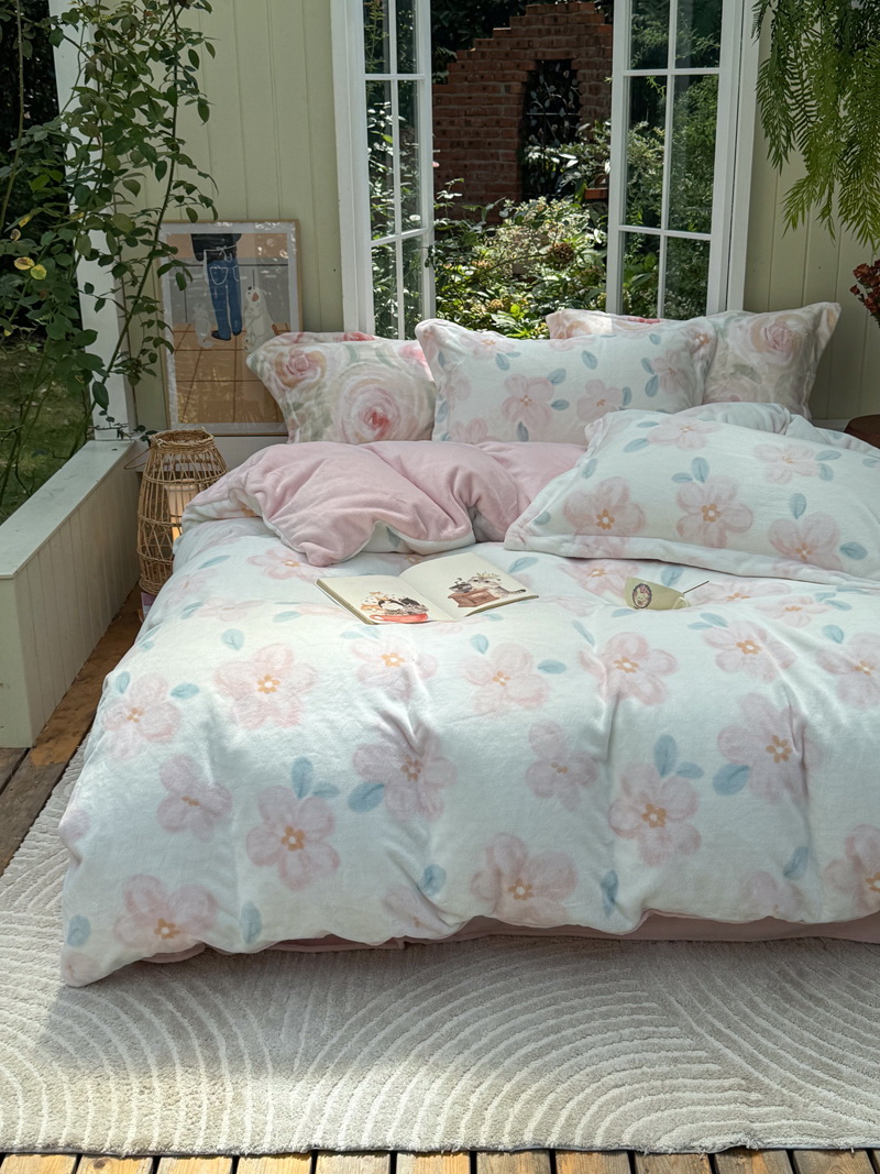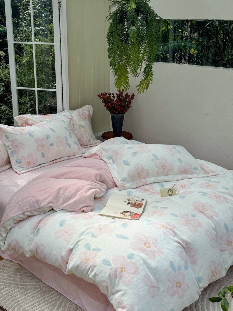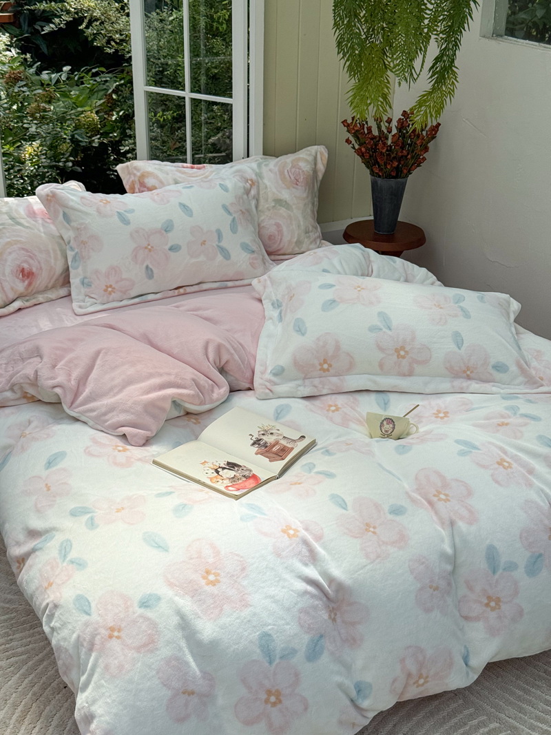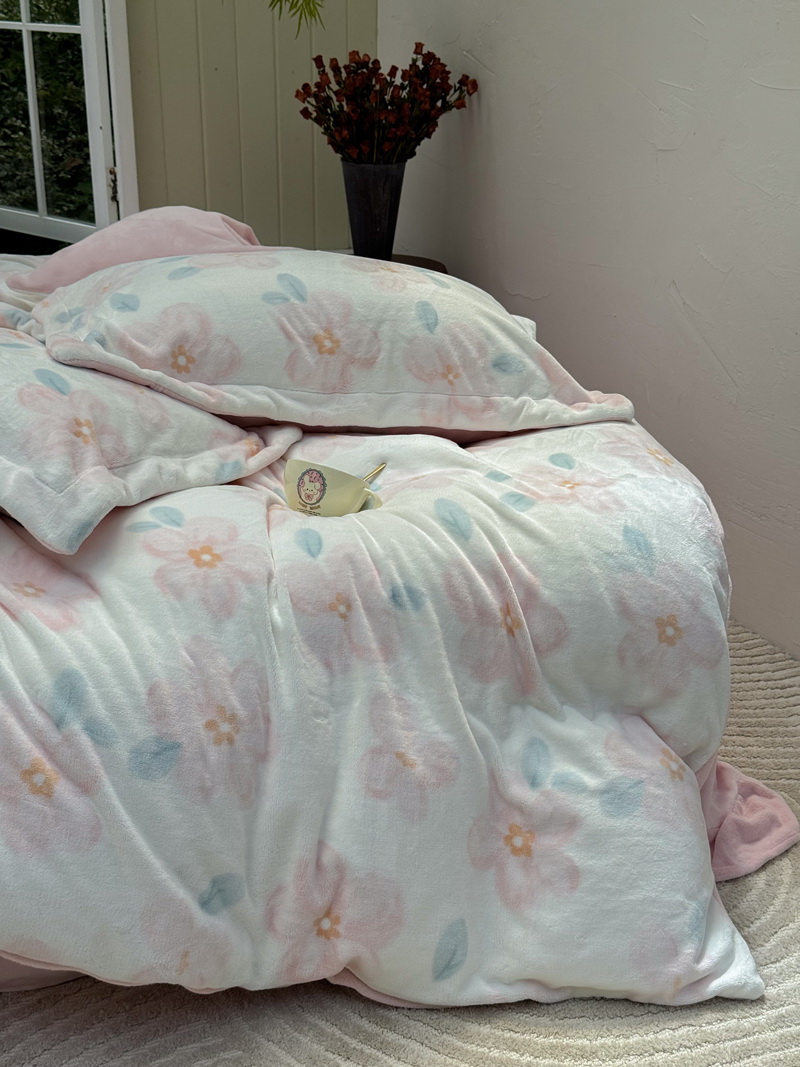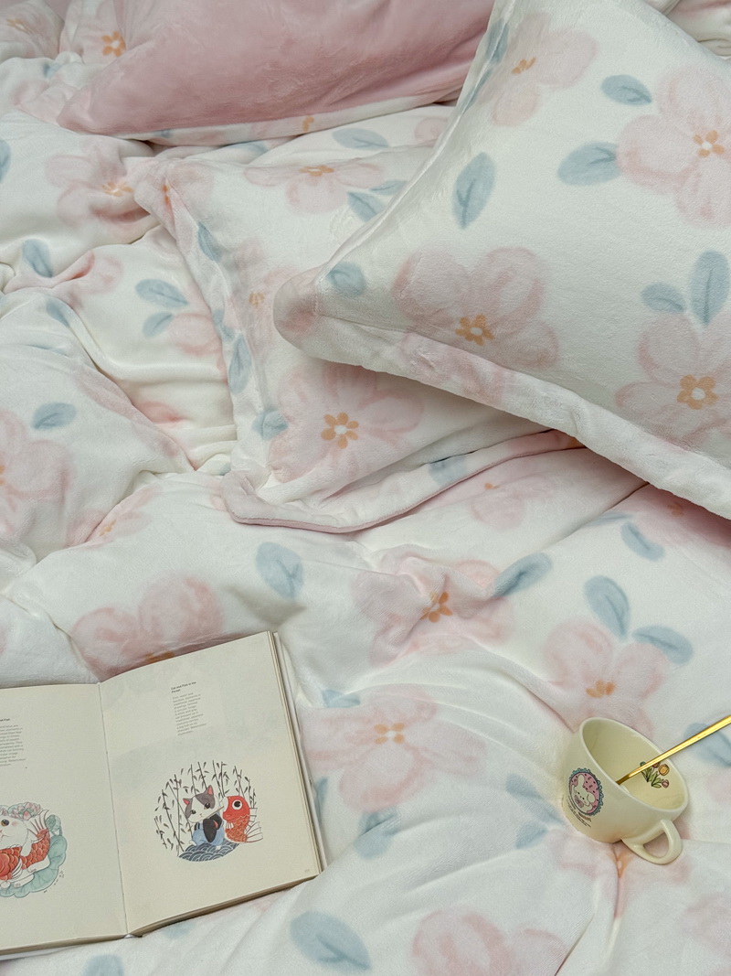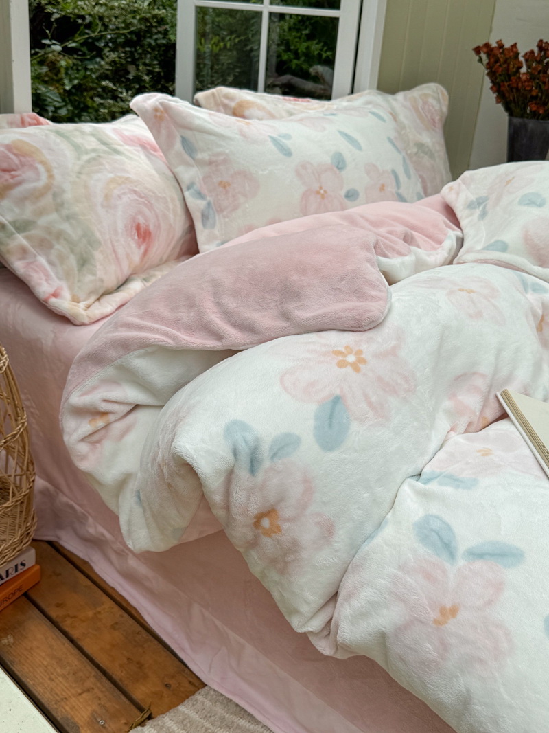 臻棉绒2025升级版本云丝绒印花四件套,小清新系列新品上市!把云端的柔软搬进卧室,裹住整夜温暖,细腻绒面触肤即暖,精致印花藏进梦境,连翻身都是与温柔的轻语相拥,锁温透气,绒面丝滑不粘肤。