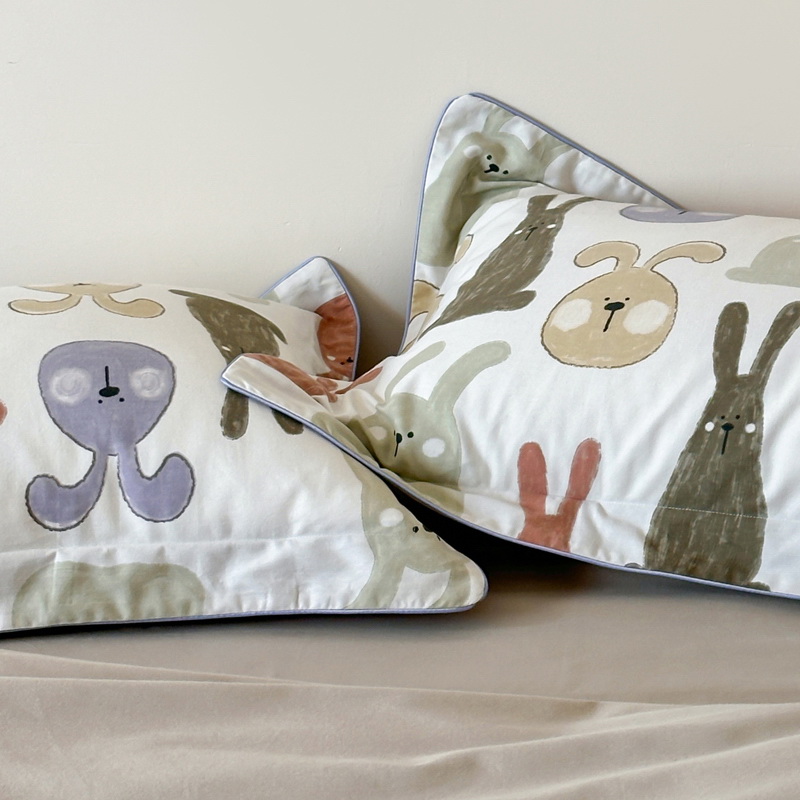 工艺:环保活性印染,手工嵌绳,贴边圆角床单