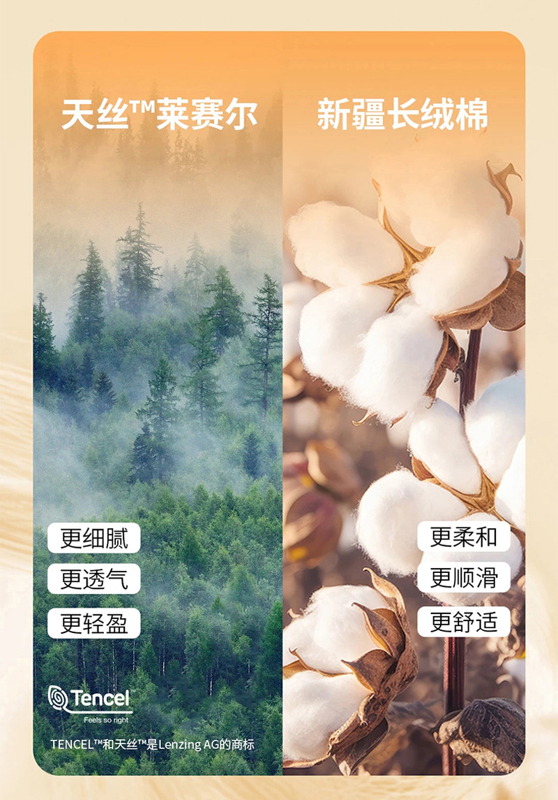 面料:65%天丝莱赛尔 35%长绒棉