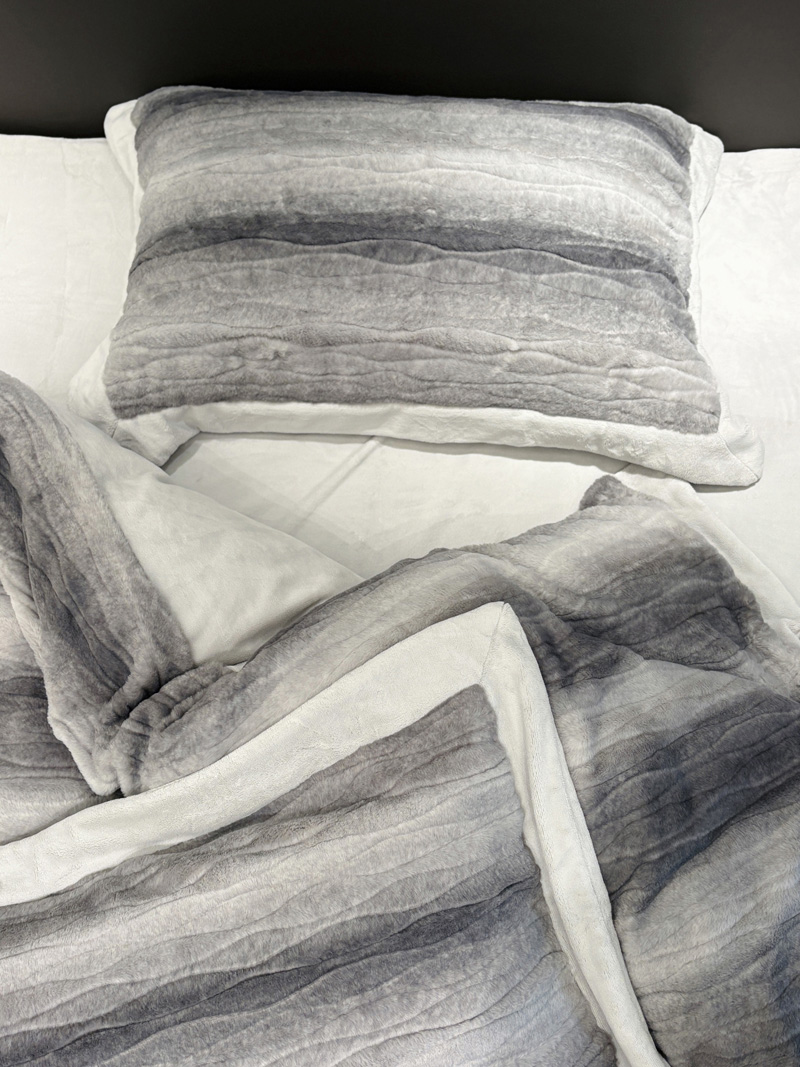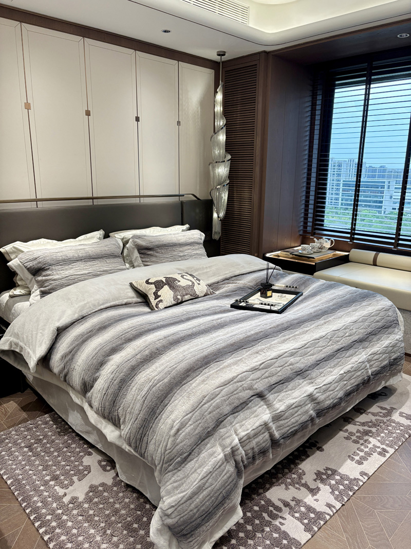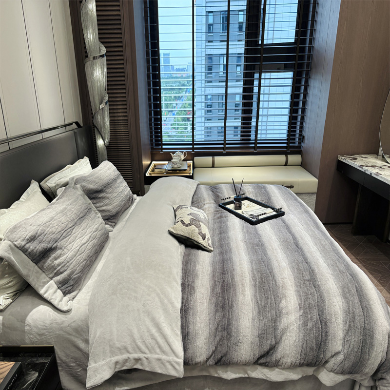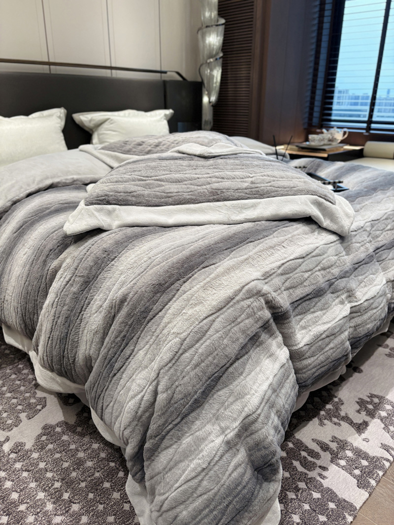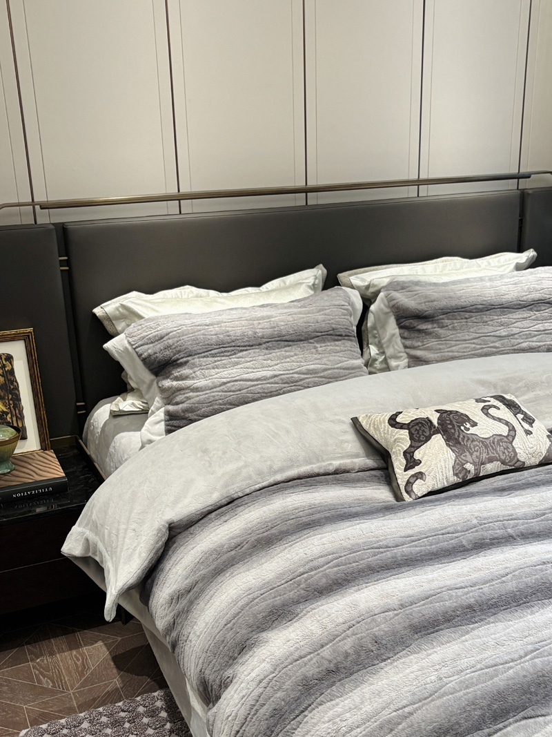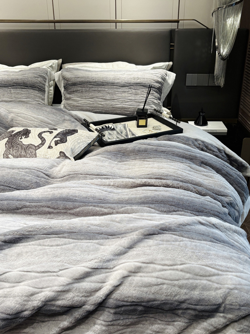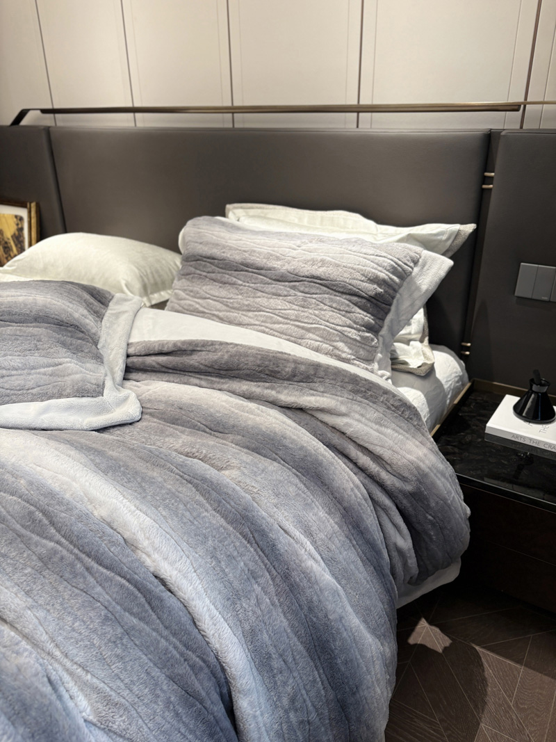 从此刻开始~柔和的绒感泛着温润光泽,摸上去软糯细腻,躺下时暖意顺着身体漫开,不用刻意装饰,卧室也成了自带轻奢氛围的暖居,整夜都像被柔软的奢华感托着,睡醒都舍不得掀开,把冬日的“温暖”与“贵气”都铺在床上。380克定制定染渐变色皮草绒,更显高品质,大宽边也奢华简约大气。看多了花里胡哨的设计,最终回归简约而不简单。