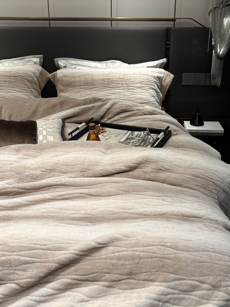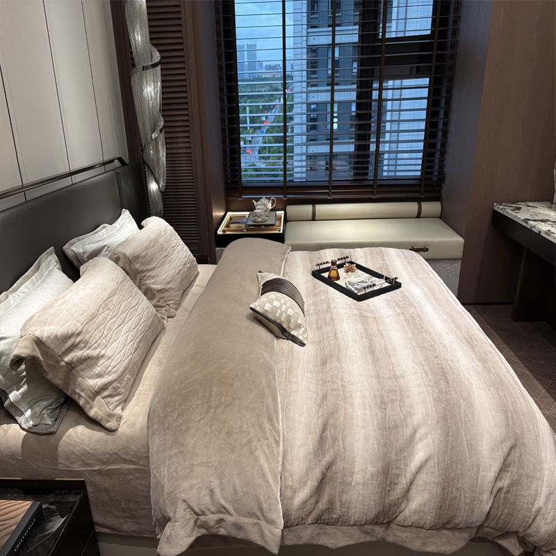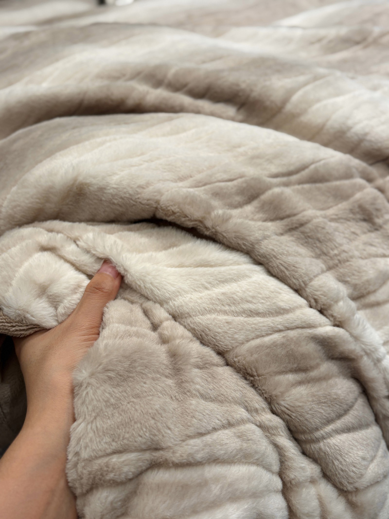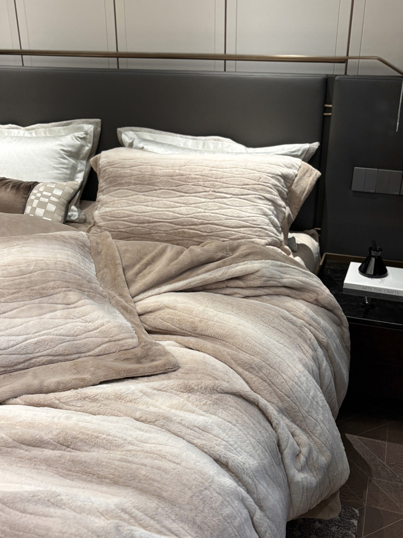 从此刻开始~柔和的绒感泛着温润光泽,摸上去软糯细腻,躺下时暖意顺着身体漫开,不用刻意装饰,卧室也成了自带轻奢氛围的暖居,整夜都像被柔软的奢华感托着,睡醒都舍不得掀开,把冬日的“温暖”与“贵气”都铺在床上。380克定制定染渐变色皮草绒,更显高品质,大宽边也奢华简约大气。看多了花里胡哨的设计,最终回归简约而不简单。