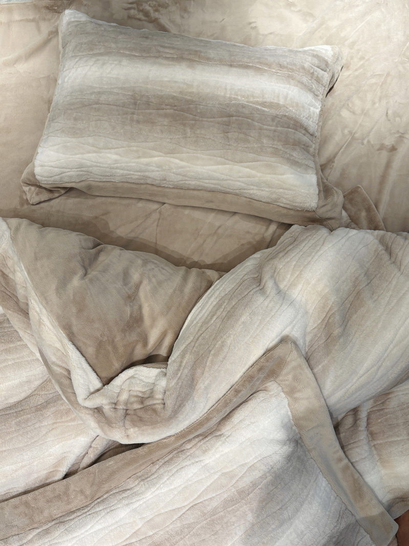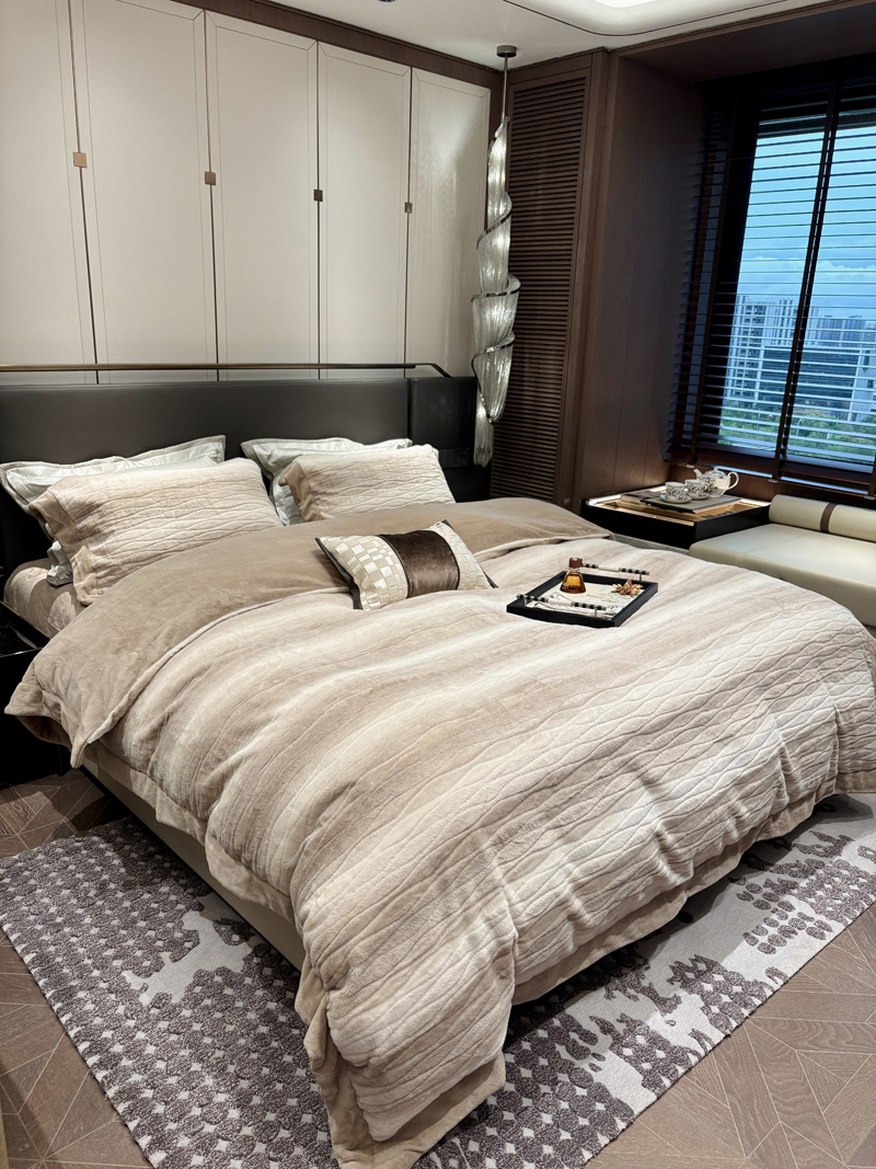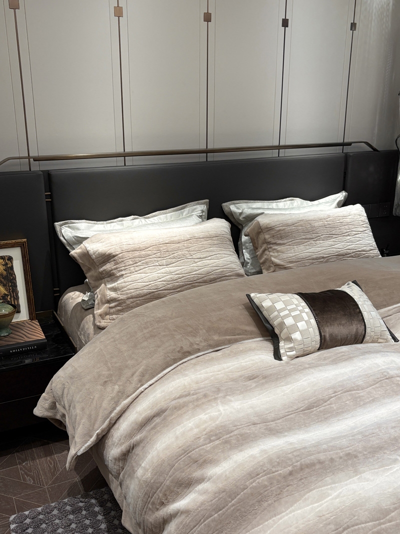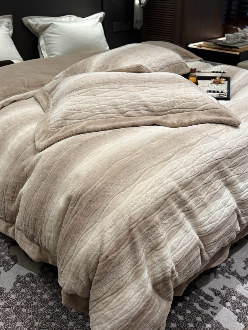 从此刻开始~柔和的绒感泛着温润光泽,摸上去软糯细腻,躺下时暖意顺着身体漫开,不用刻意装饰,卧室也成了自带轻奢氛围的暖居,整夜都像被柔软的奢华感托着,睡醒都舍不得掀开,把冬日的“温暖”与“贵气”都铺在床上。380克定制定染渐变色皮草绒,更显高品质,大宽边也奢华简约大气。看多了花里胡哨的设计,最终回归简约而不简单。