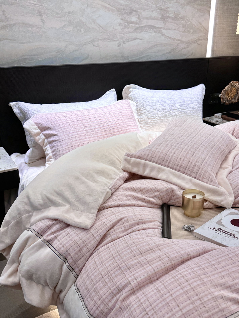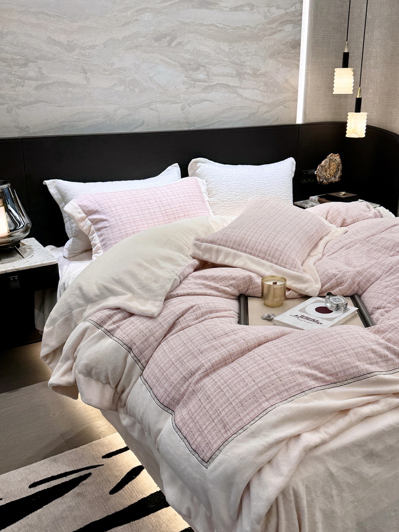 定制即暖绒面料三秒速热,厚实柔软不掉毛毛,绒绒的手感,温暖不压身,幸福感提升,微导电丝,防止静电,保暖舒适的同时不会误伤皮肤,太适合秋冬天裸睡了。双面加厚即暖绒,聚热锁暖,实力抗寒!绒毛软糯细腻,顺着逆着摸都舒服。保暖性也好,钻进被窝感觉不到凉意,升温快还能锁温,能给你一个整晚都暖和的被窝。