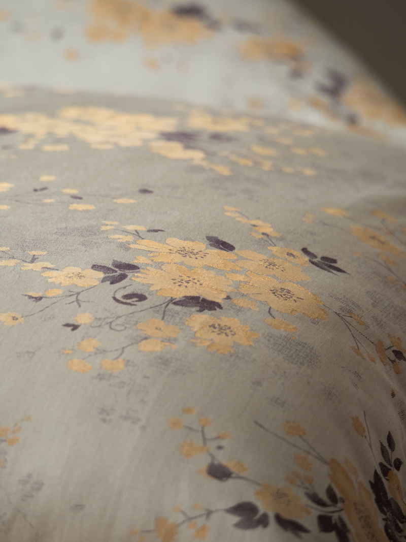 逅花园设计灵感:灵感来源于一处静谧的欧式古典花园,春风轻拂,鹅黄色小花于浅灰枝叶间自由绽放,勾勒出花枝交错、自然生长的浪漫意象。边缘饰以如雕花栏杆般的精致纹样,仿佛凝固了春日花园中灵动的一隅。整体弥漫着清新而高雅的生机氛围,细腻的纹理与柔和的色彩彼此呼应,为居室空间注入一丝不经意间的奢华与自然诗意。