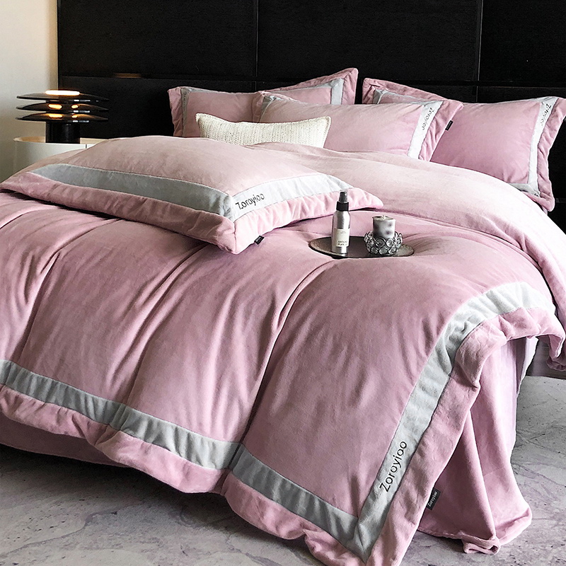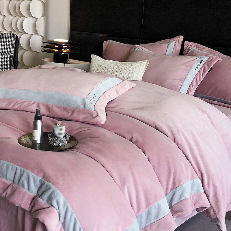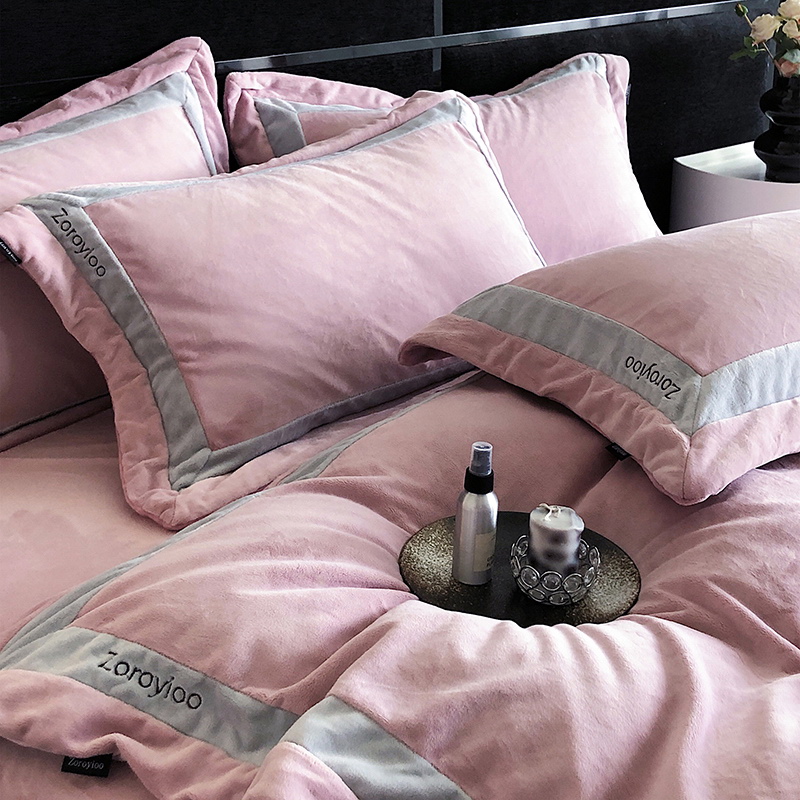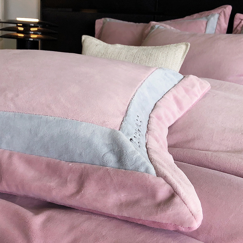 奢华秘鲁进口骆玛绒面料,再次升级研发,注重低调精致的生活方式,臻选温暖的自然原材成为设计的核心。在复古风格流行趋势中,聚焦于暖性色调的魅力展现,如棕、粉、米等色调,营造温暖浪漫,冷杉灰增点高级优雅,平衡热烈氛围。局部高定品牌字母设计,巧妙地将经典刺绣工艺与现代审美相结合,创造出一种独特而引人注目的视觉效果,为简约的床品增添了一抹生动与活力。