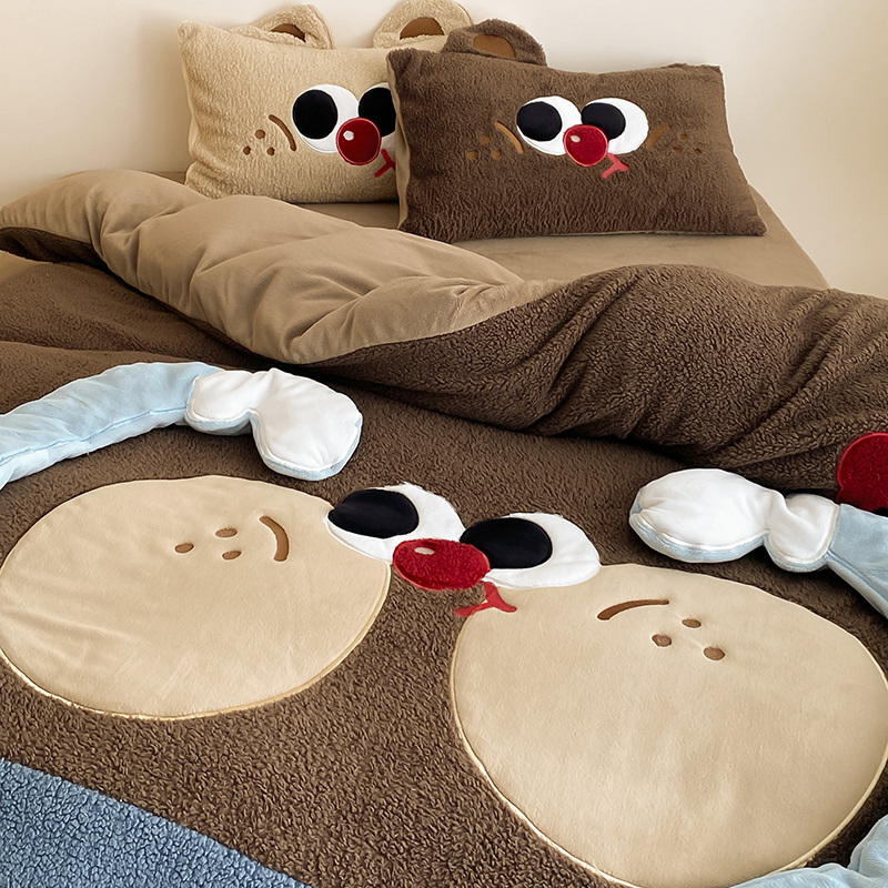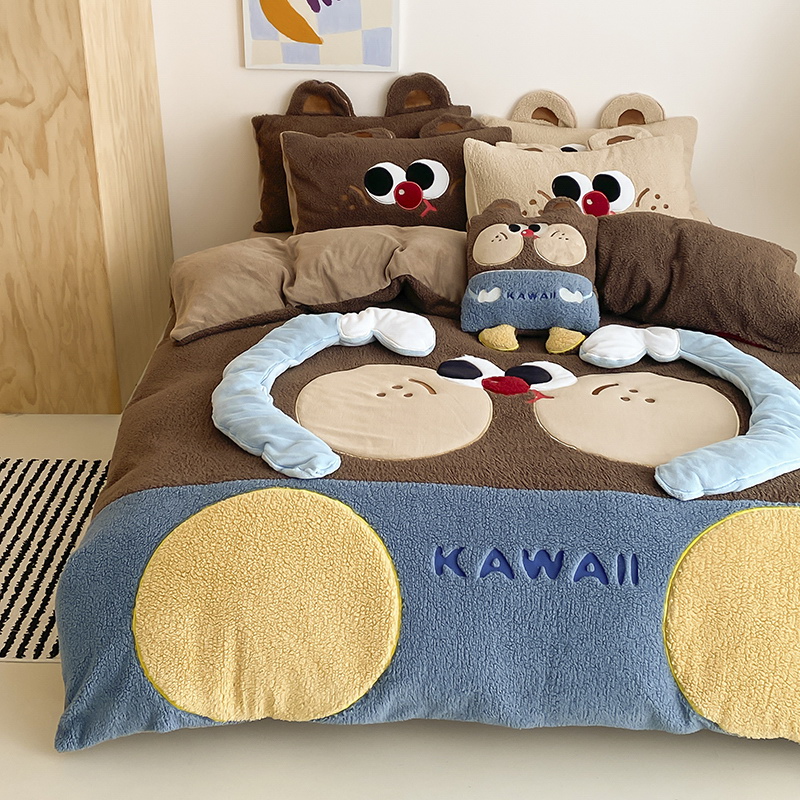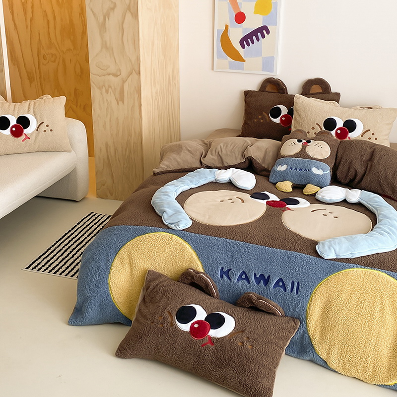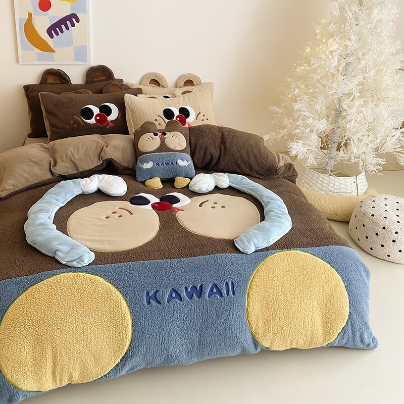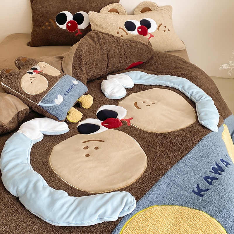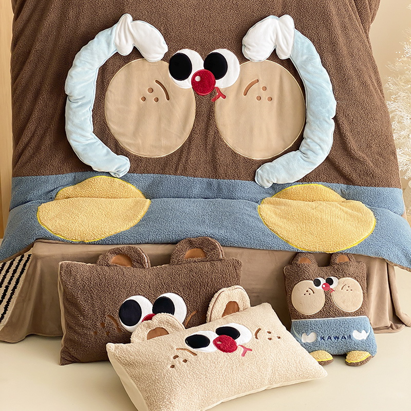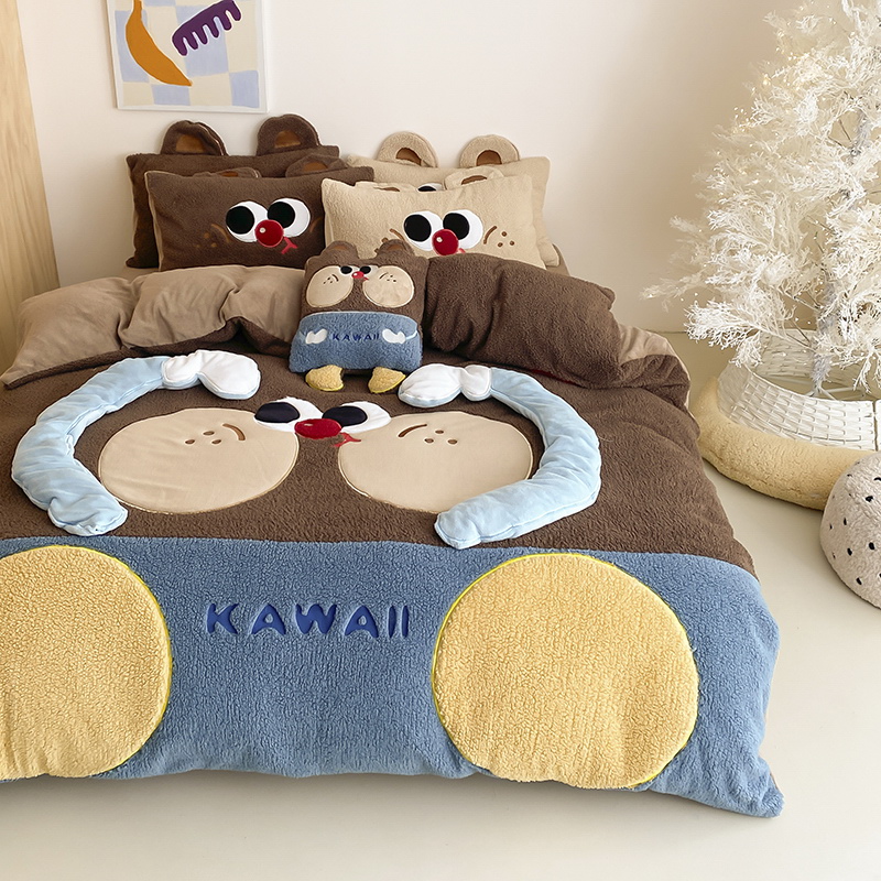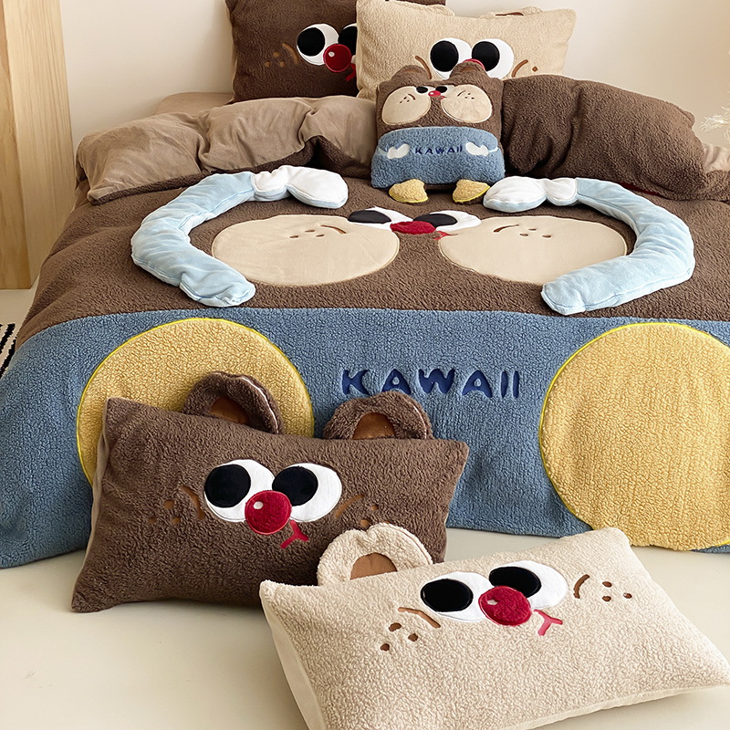 可爱萌熊立体重工泰迪牛奶绒套件系列(送同款抱枕)