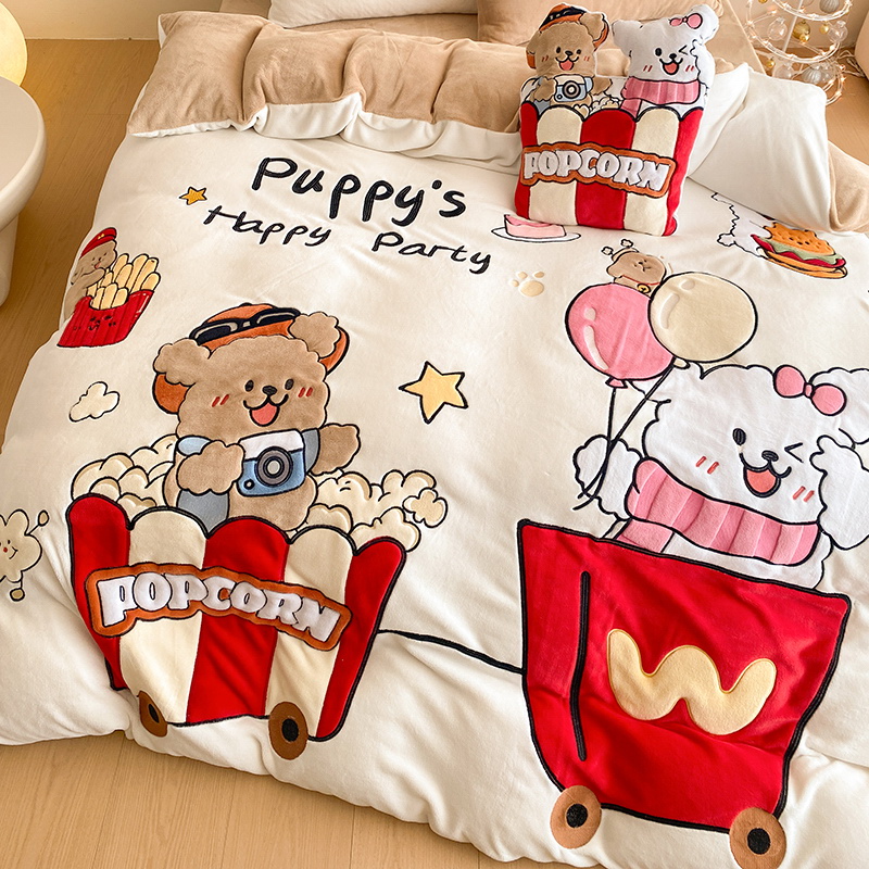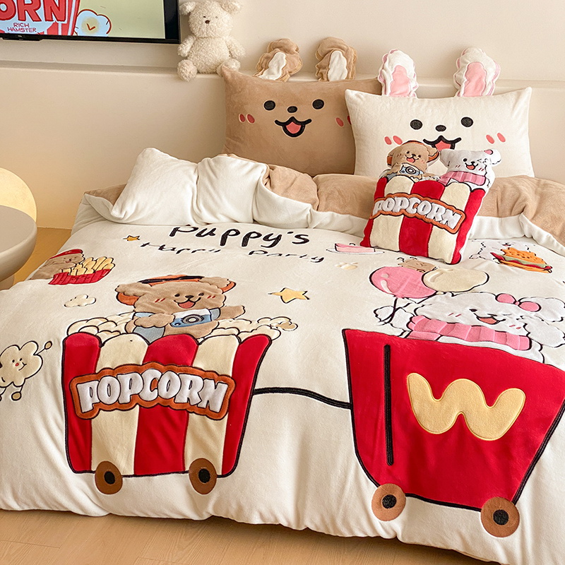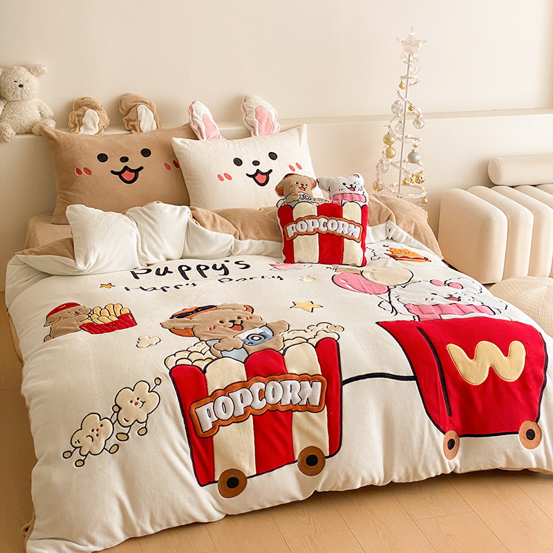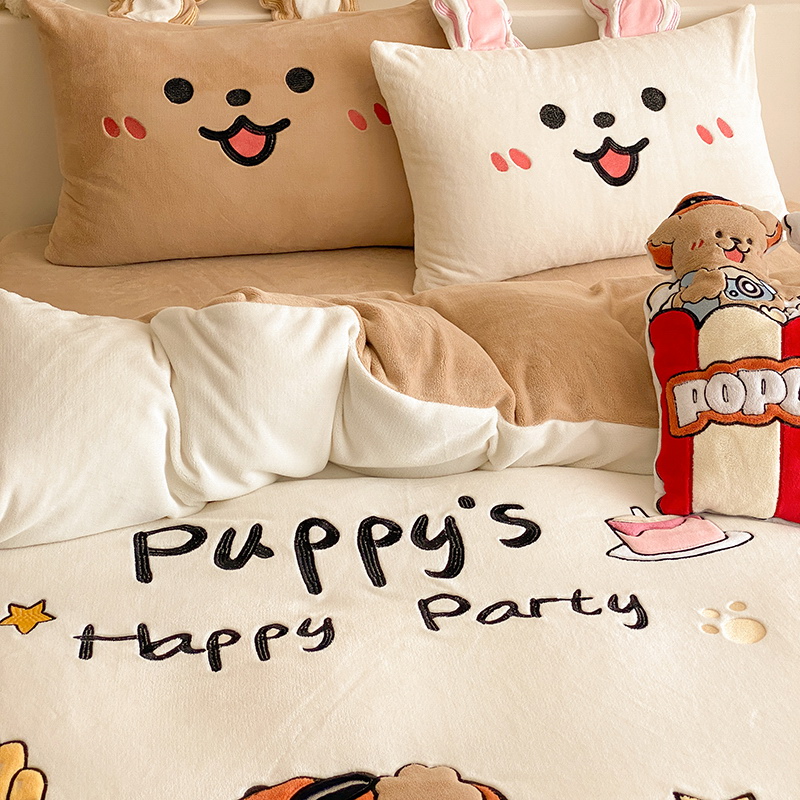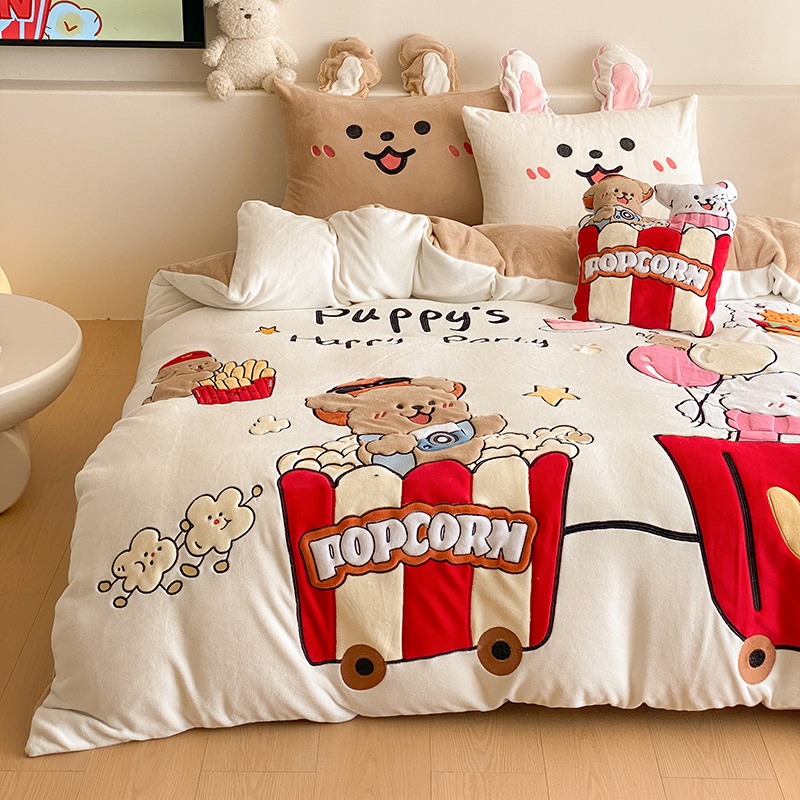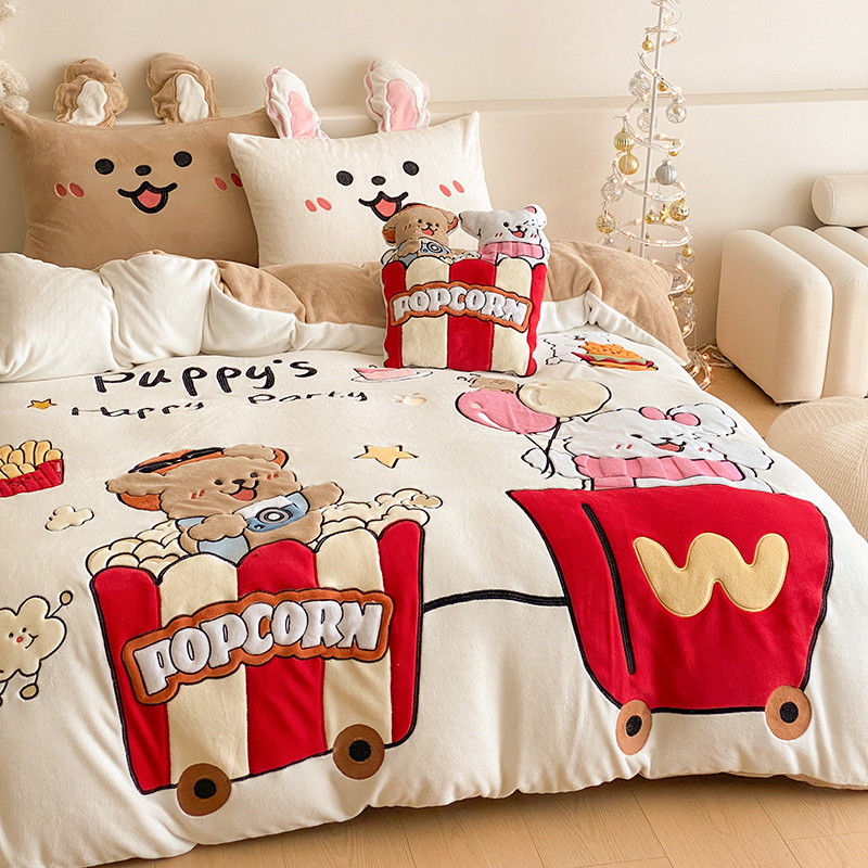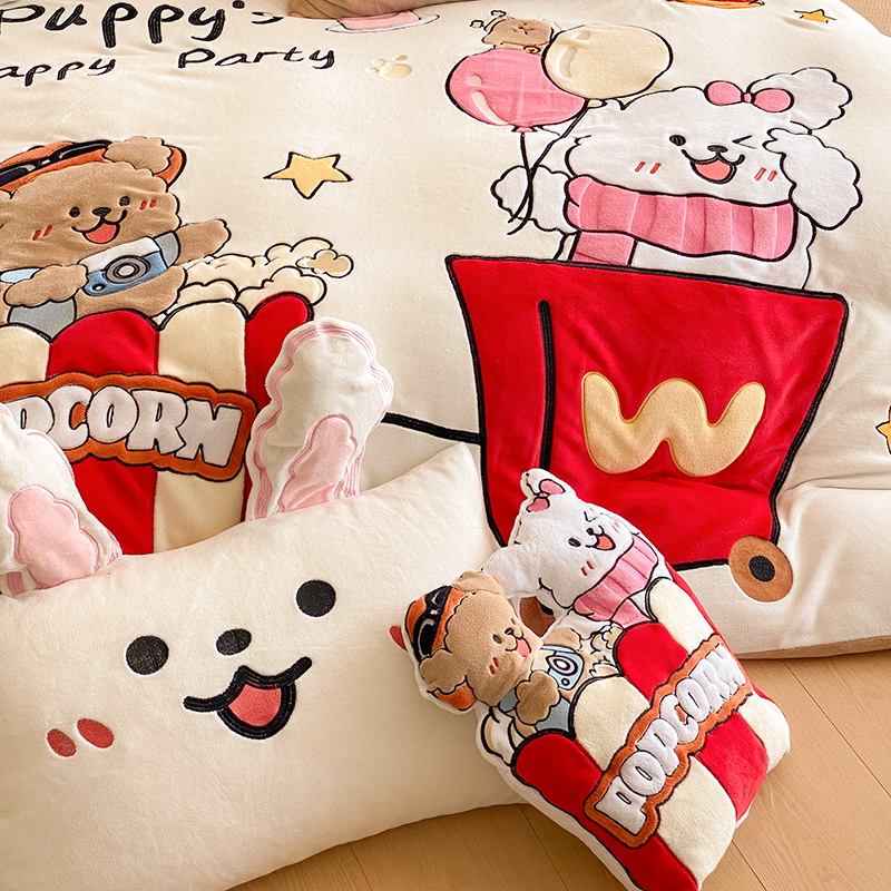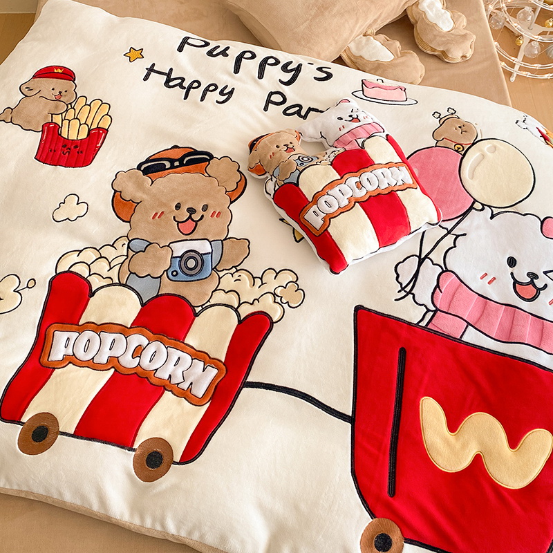 可爱幸福满满洋气立体重工牛奶绒套件系列(送同款抱枕)