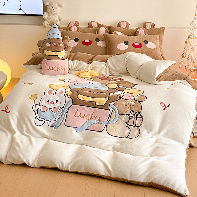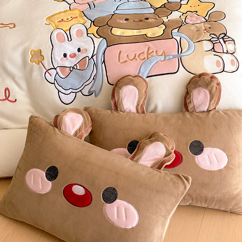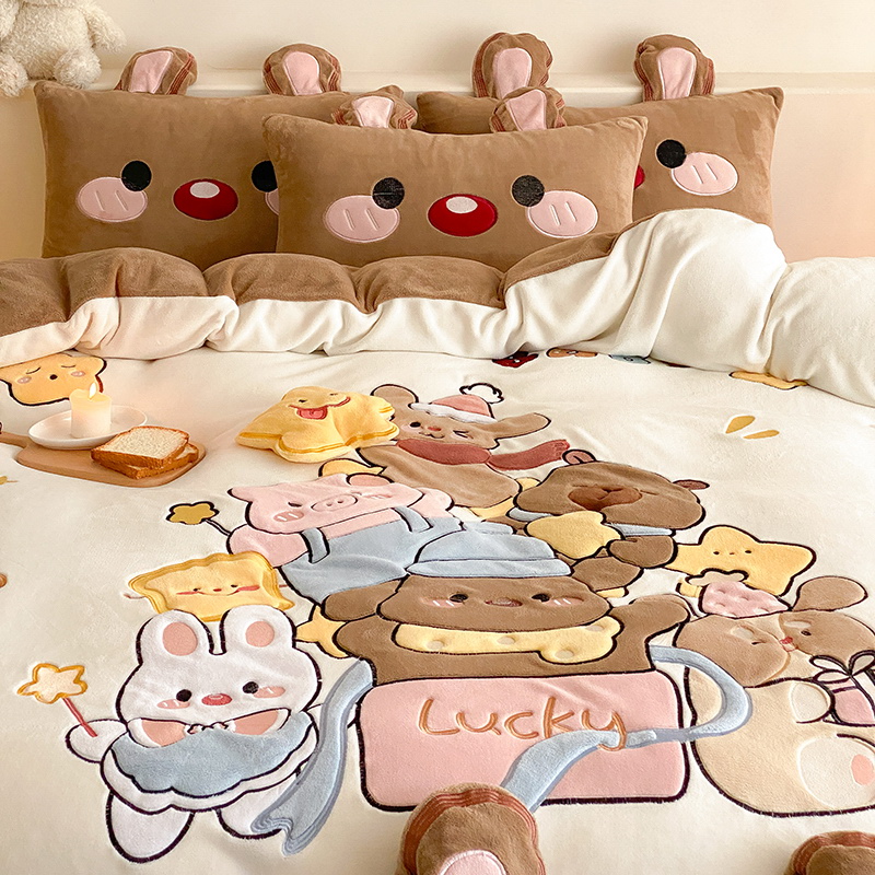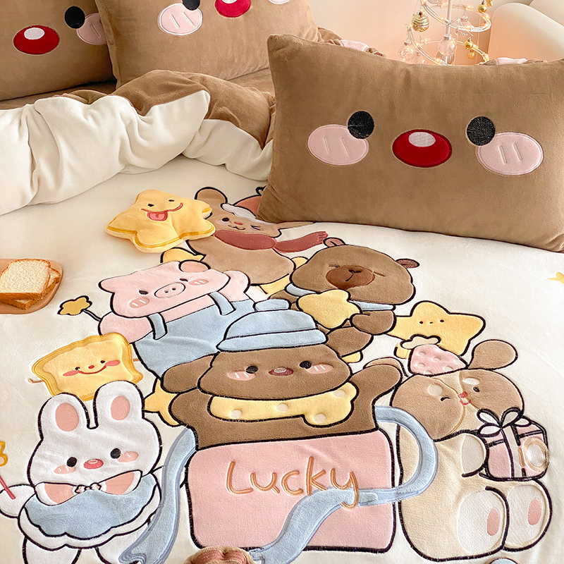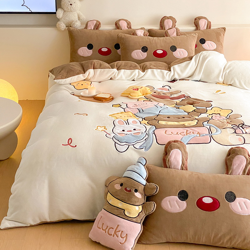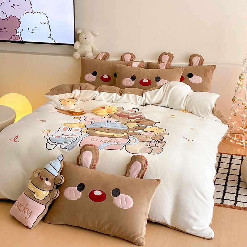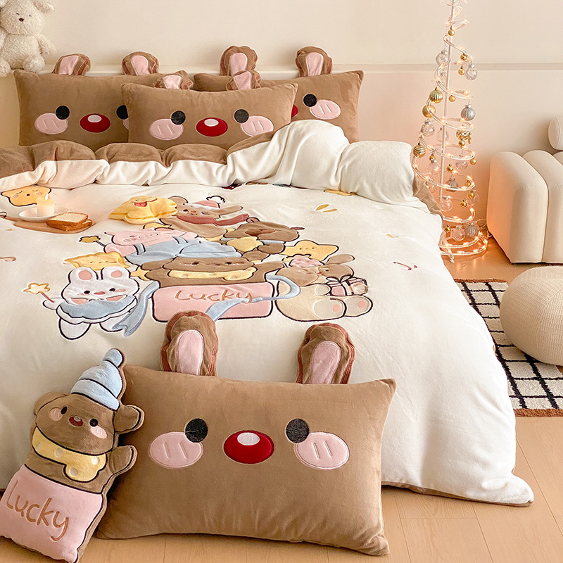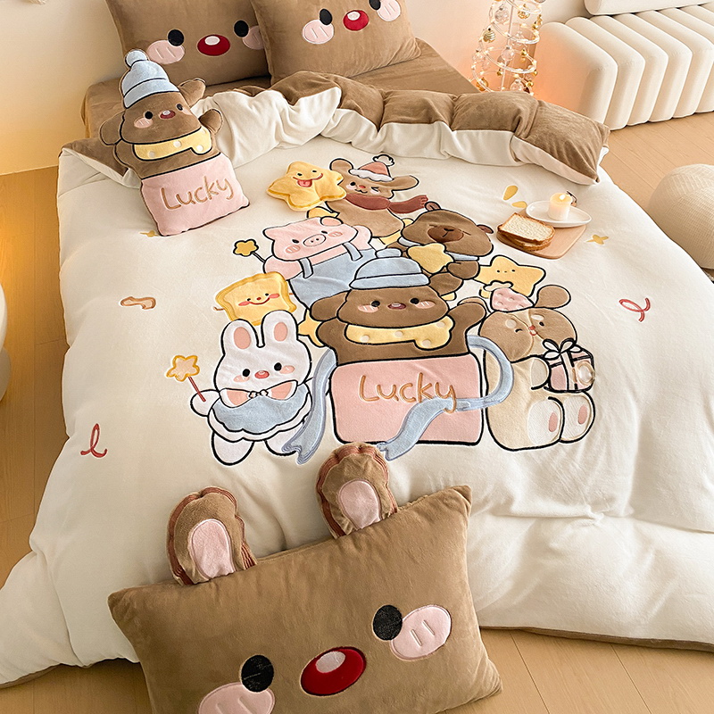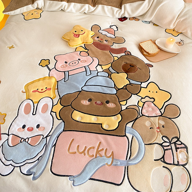可爱幸福满满洋气立体重工牛奶绒套件系列(送同款抱枕)