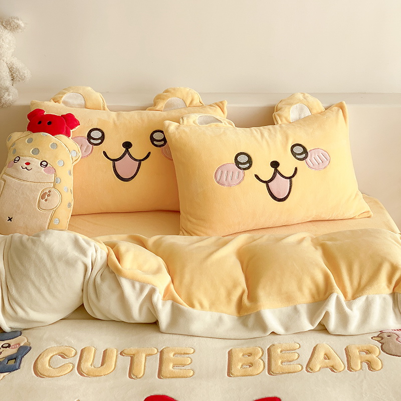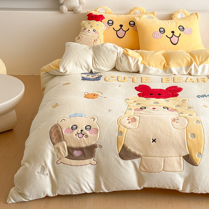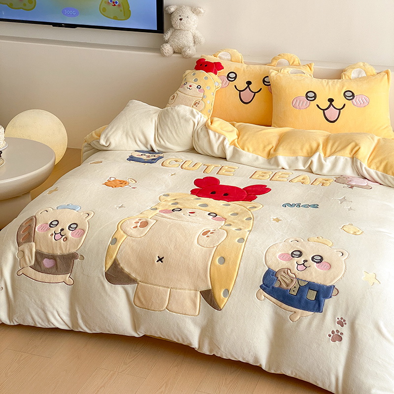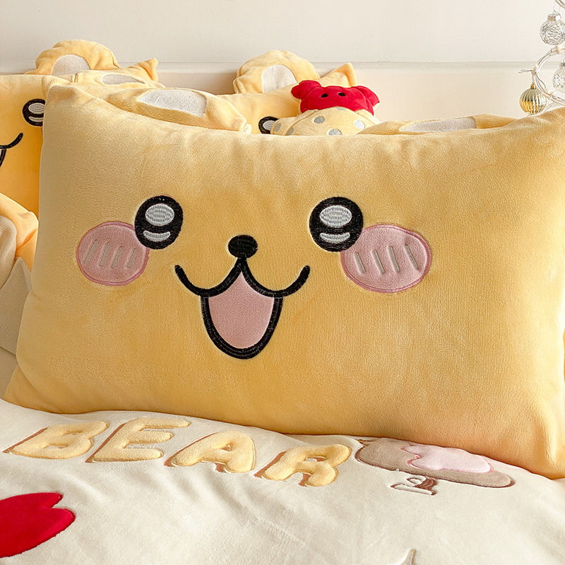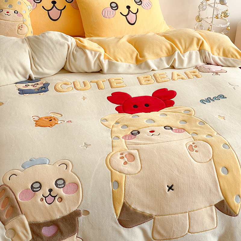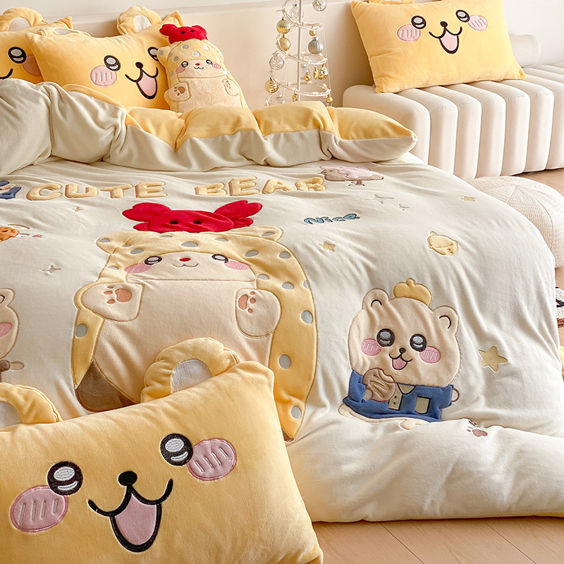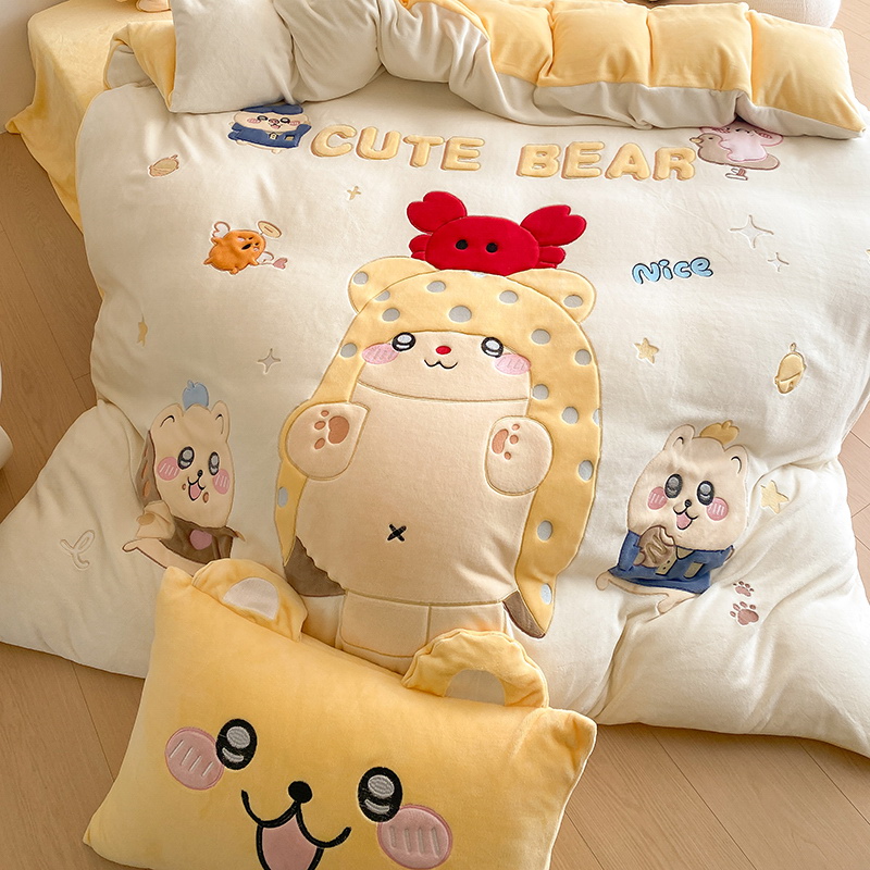 可爱幸福满满洋气立体重工牛奶绒套件系列(送同款抱枕)