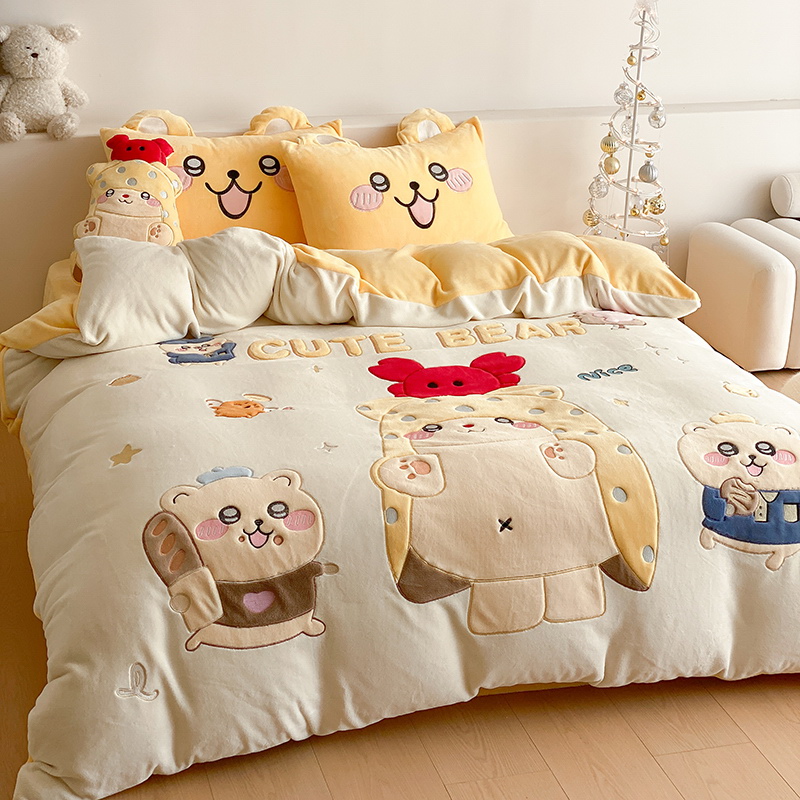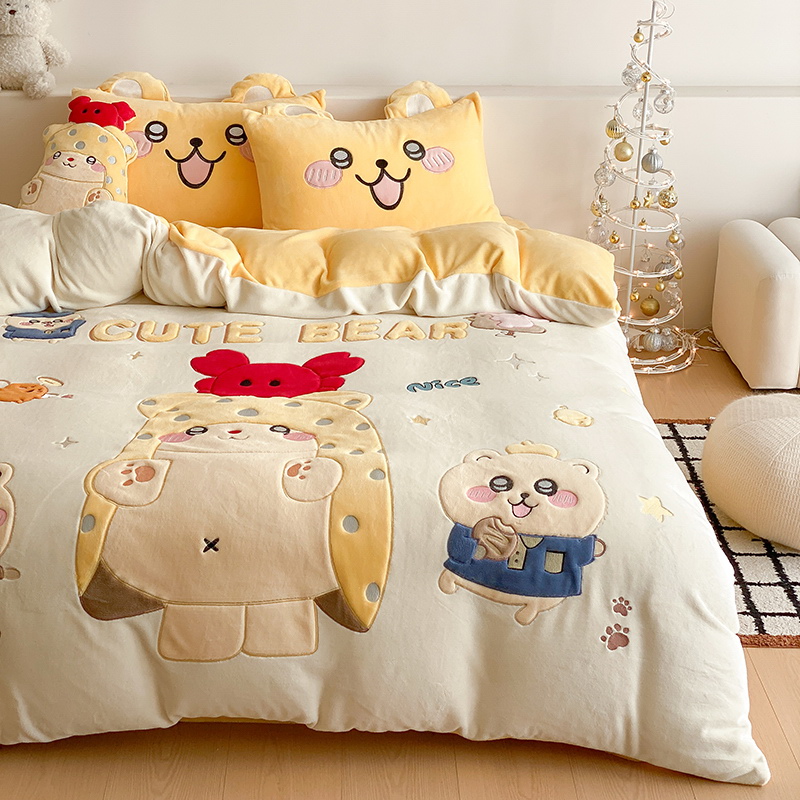 品名:可爱幸福满满洋气立体重工牛奶绒套件系列(送同款抱枕)