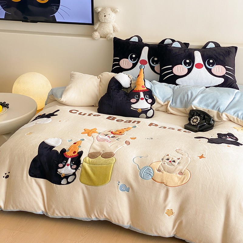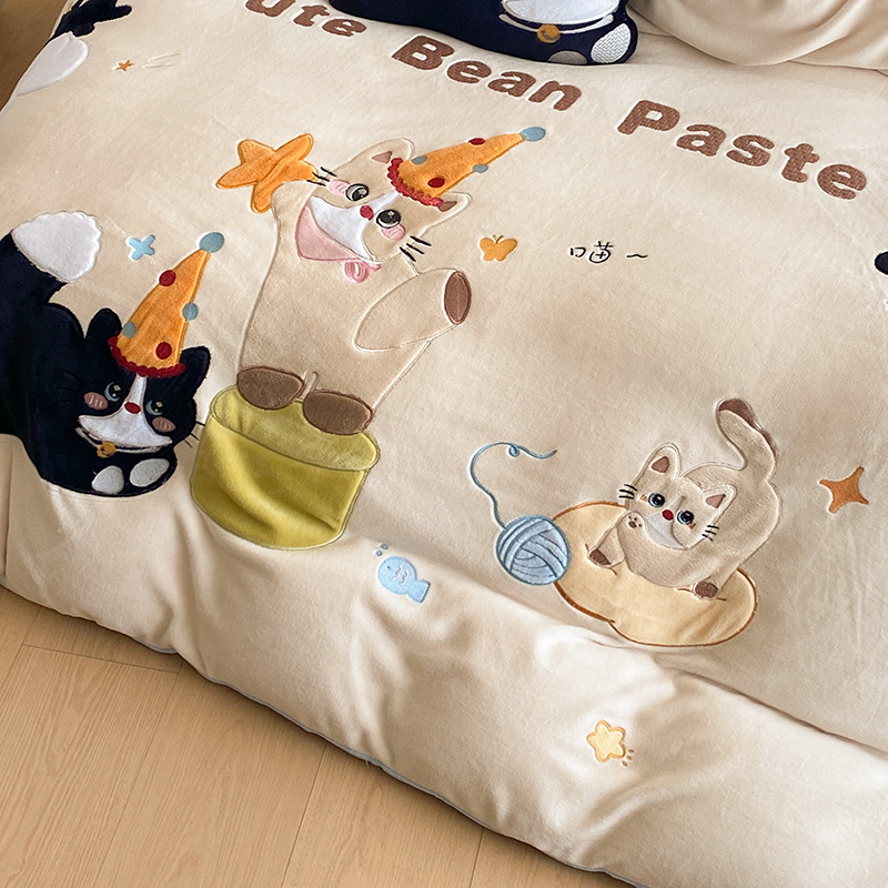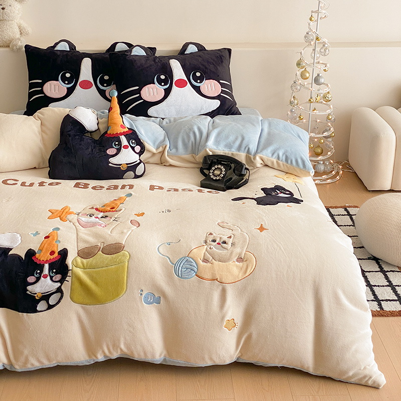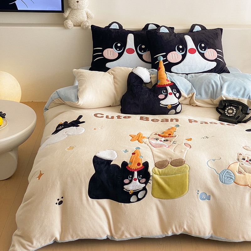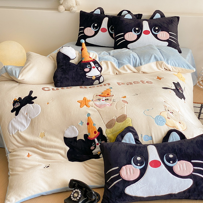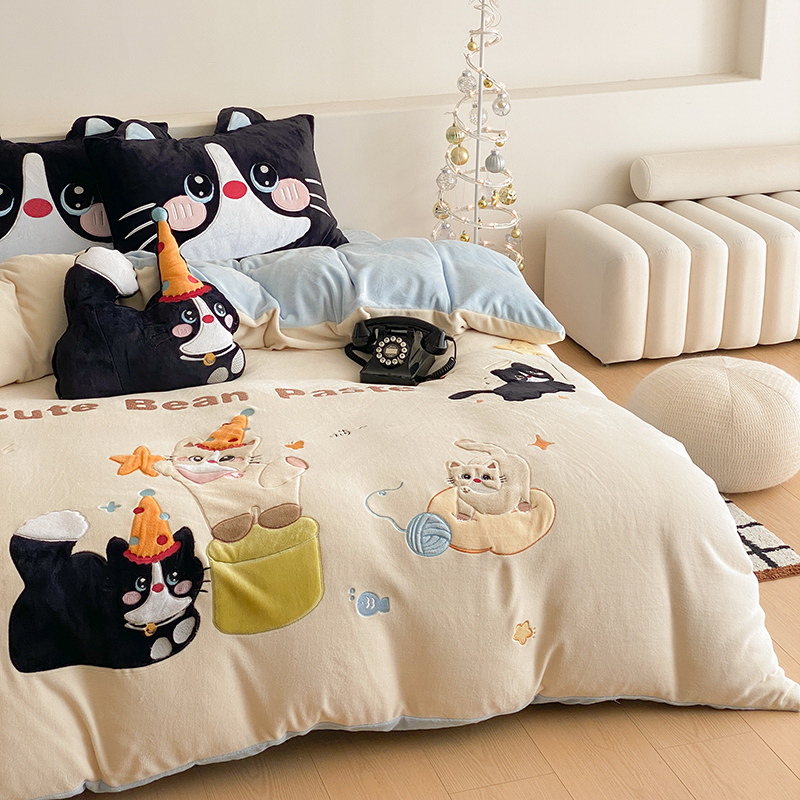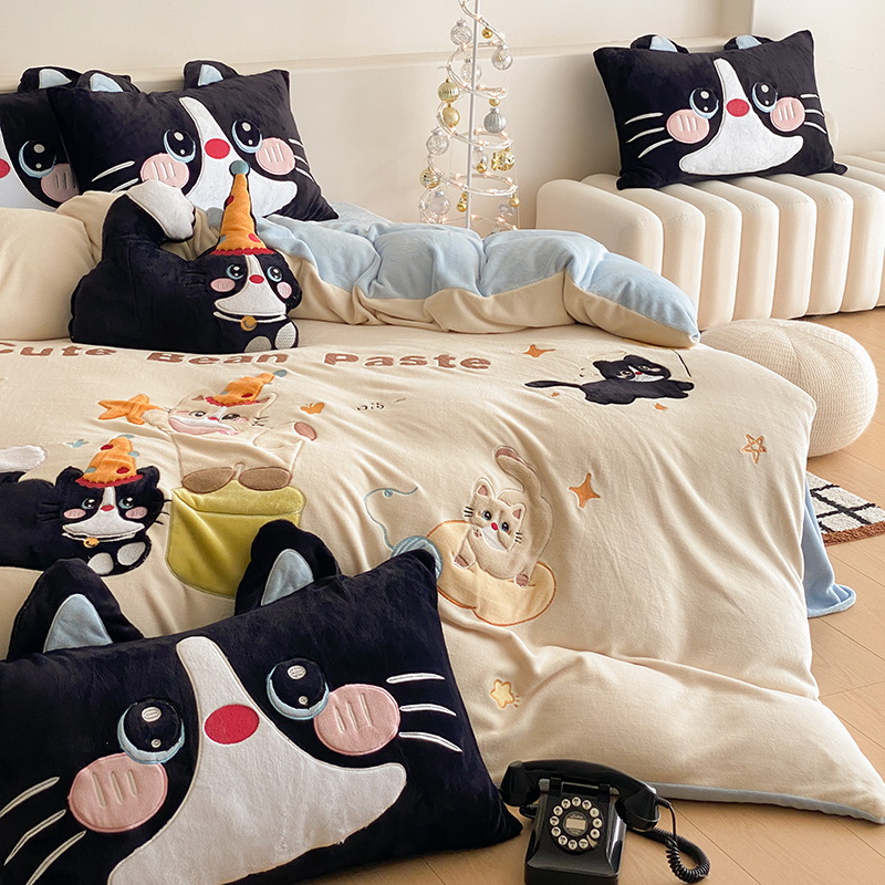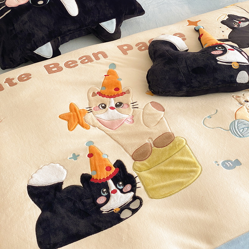 品名:可爱幸福满满洋气立体重工牛奶绒套件系列(送同款抱枕)
