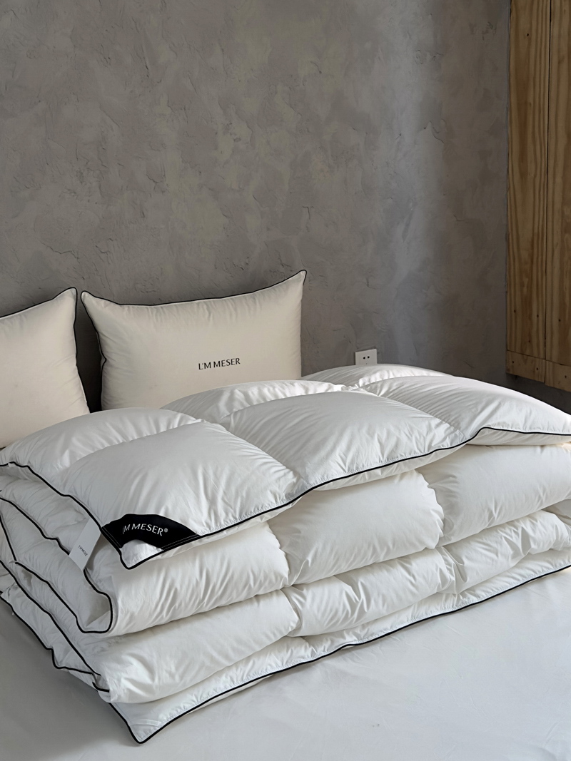 95%大朵白鹅绒,以空气感绒朵构建保温层,轻盈,是它的语言;释放,是它的承诺。选用120支高密柔滑面料,如触丝绸,微凉贴肤,裸睡级亲肤感不只是一句话,而是每一夜的实际体验。当你不再感知被子的存在,才是真正睡眠的开始。