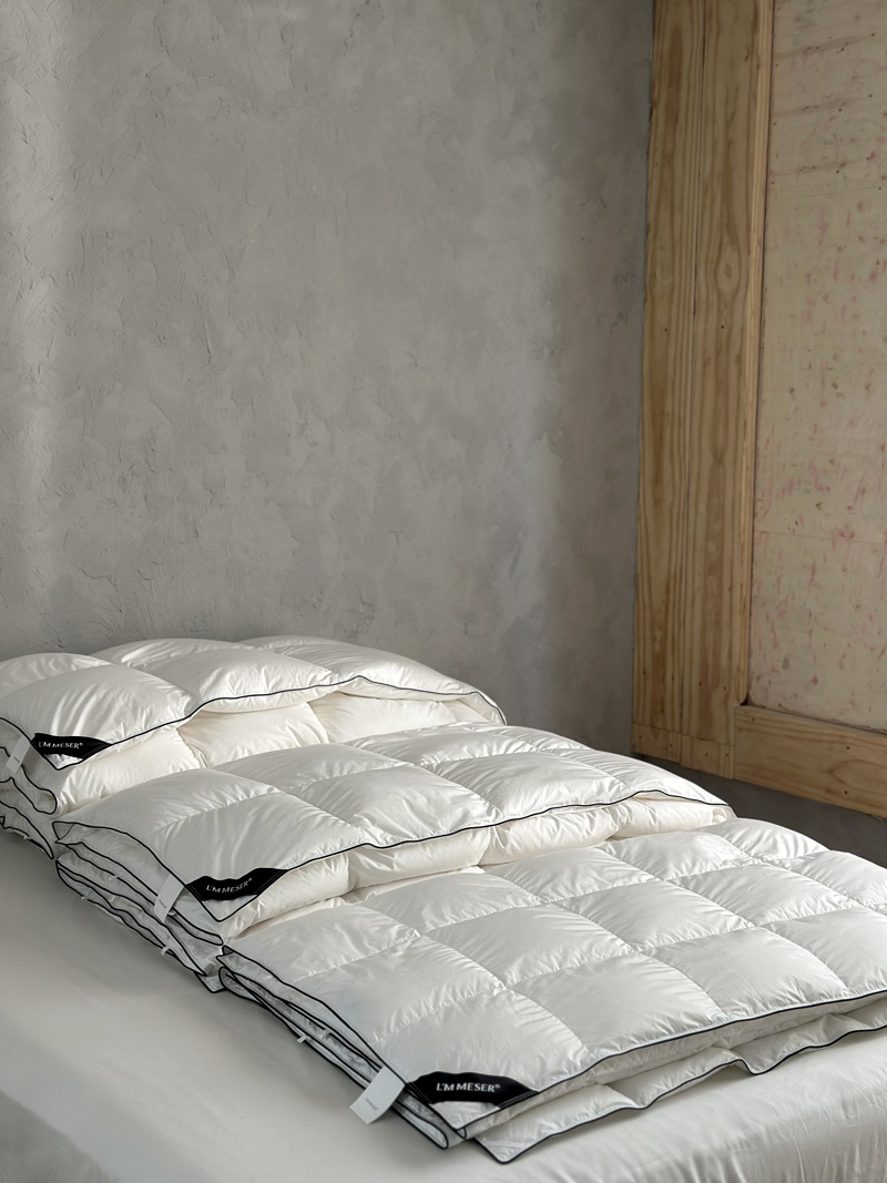 触感之柔: 120支面料的丝滑与鹅绒的蓬松,交织出舒适。