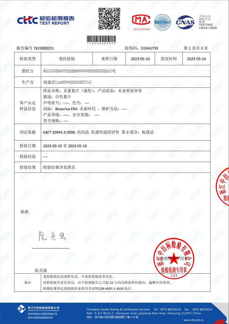 填充:20%禾素抗菌纤维80%聚酯纤维