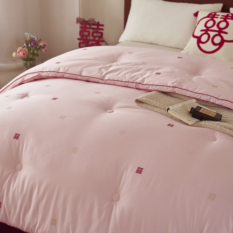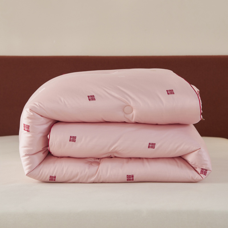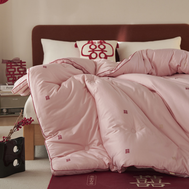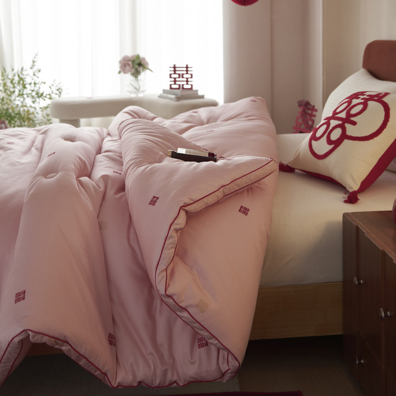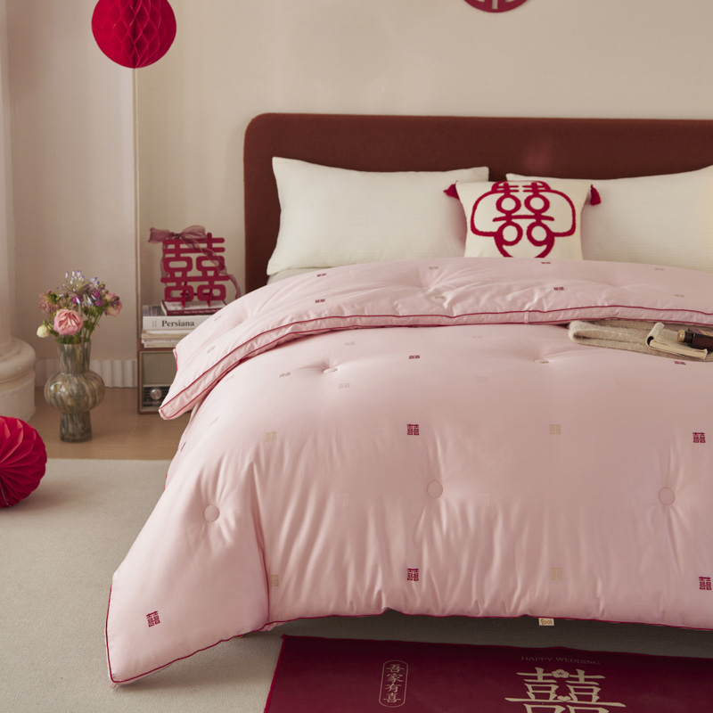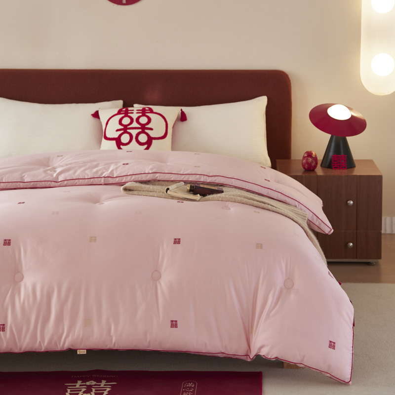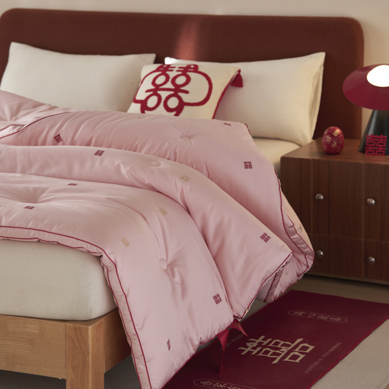 吾家有喜,锦被生辉。精选长绒棉,以匠心提花织就一床好梦。更有抗菌防螨科技静静守护,让爱与健康日夜相伴,从此新婚安眠无忧。
