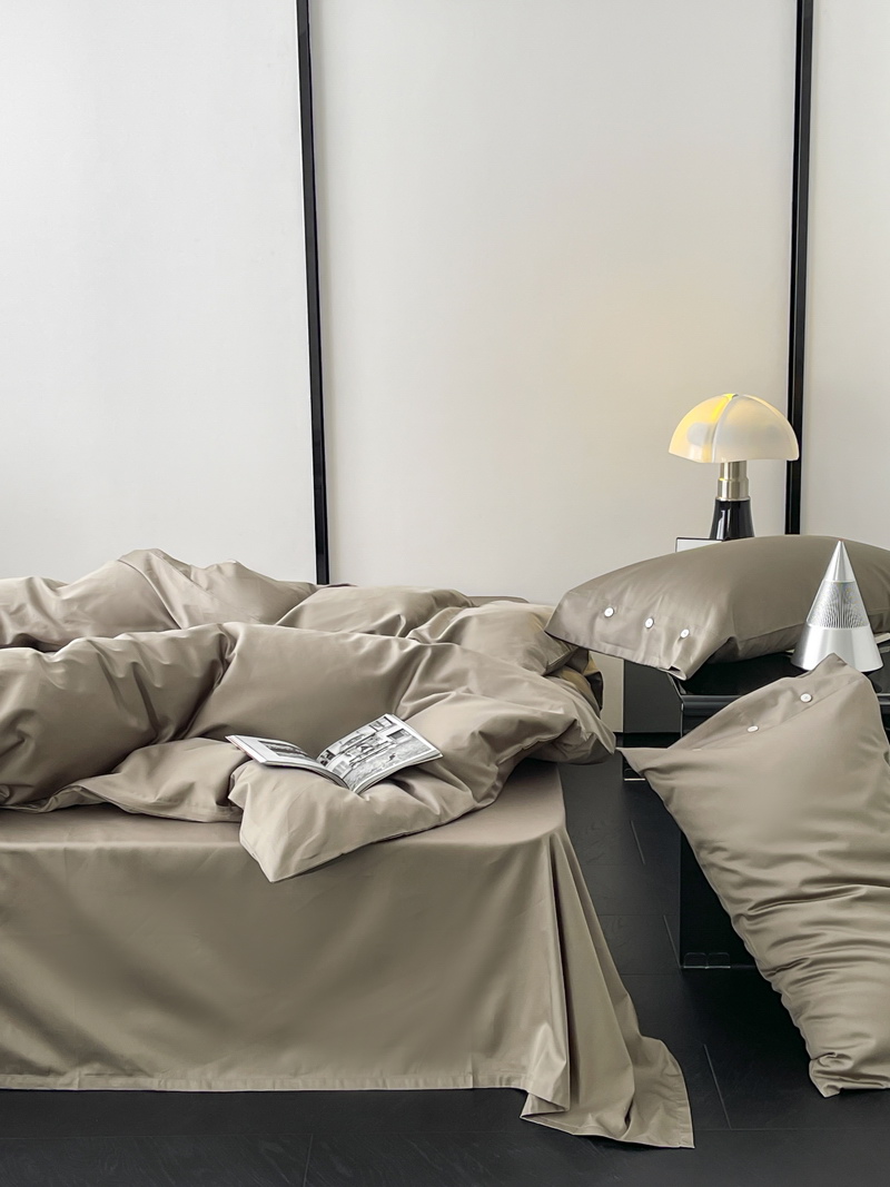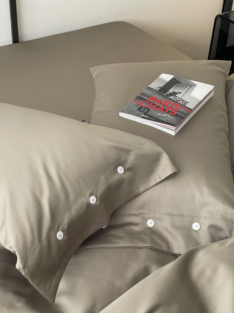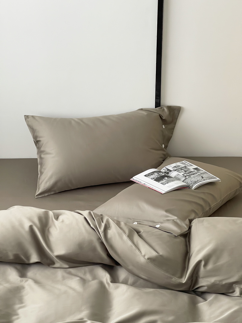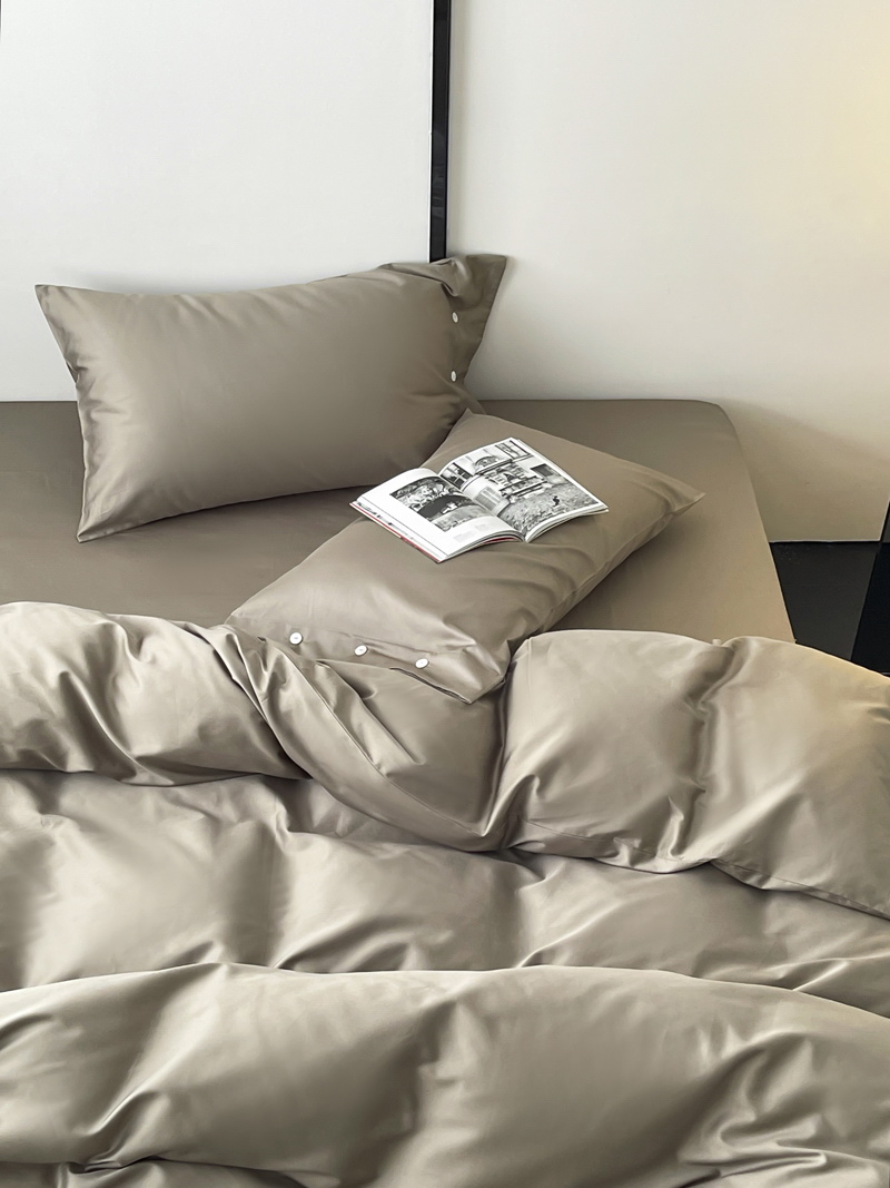 我们摒弃浮夸的印花与多余的装饰,回归面料最本真的魅力。面料一直是拿手的高精密60支(60×60)精梳紧密纺,密度做到(200×105)经由60支高密工艺精心织就。这意味着每平方英寸内交织的纱线更多更密,成就了面料丝滑、挺括且坚韧的质感。