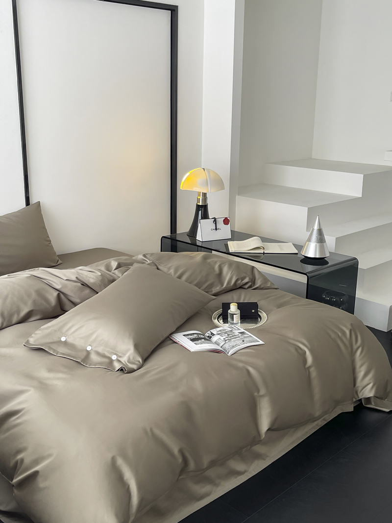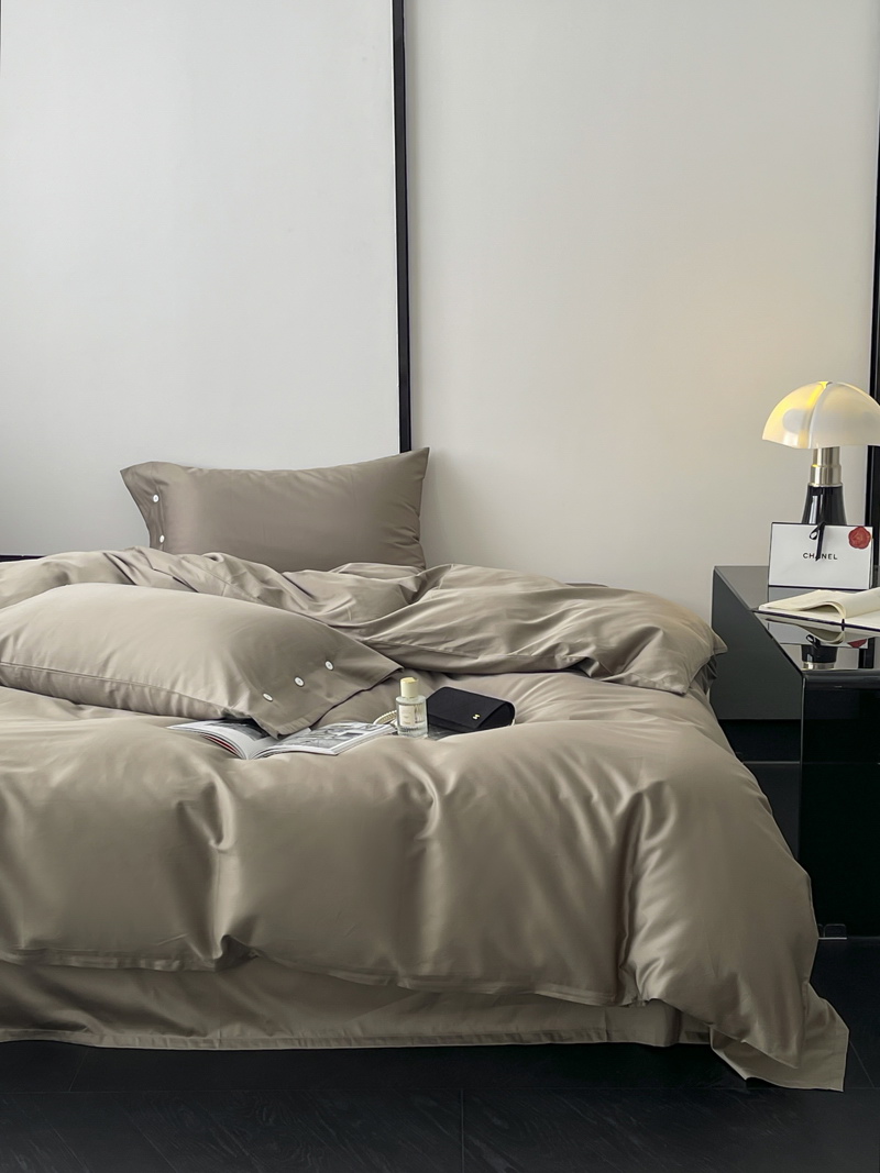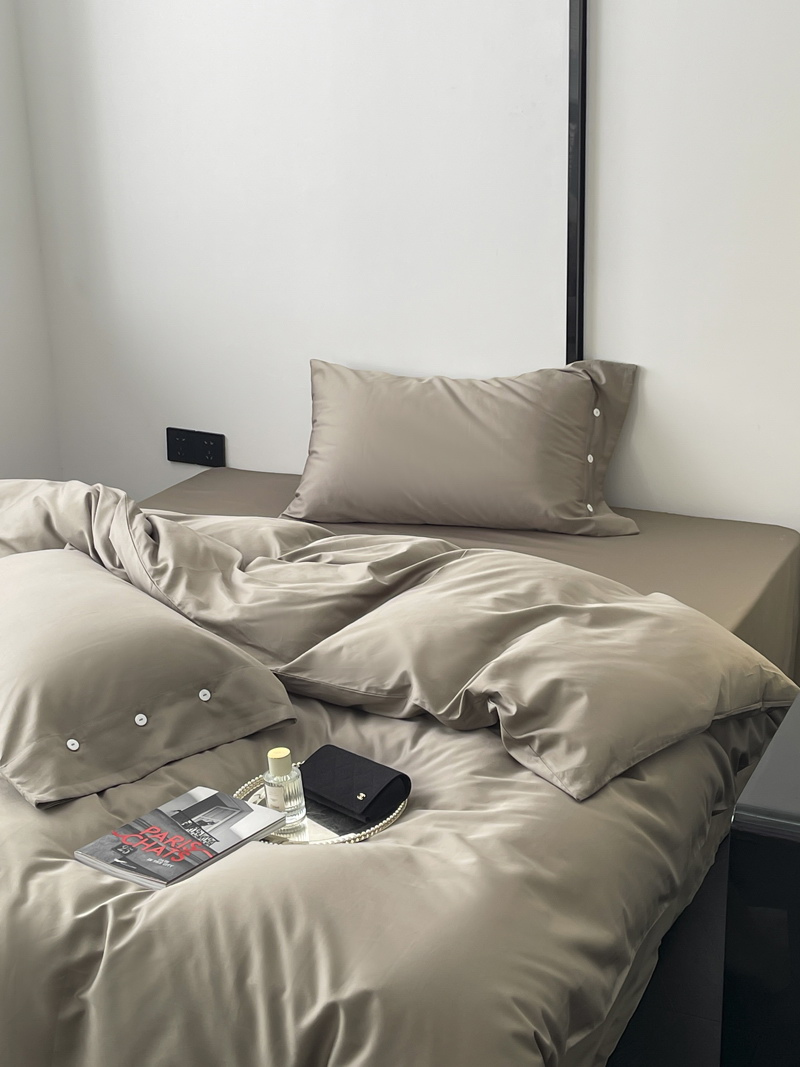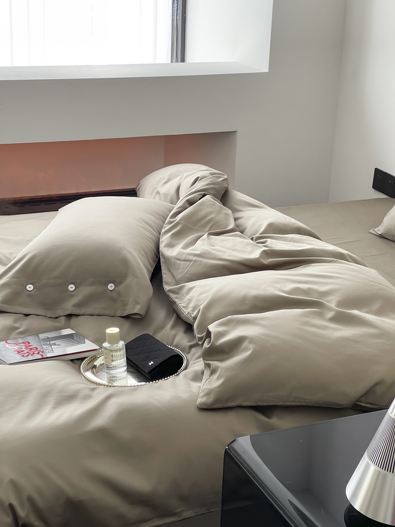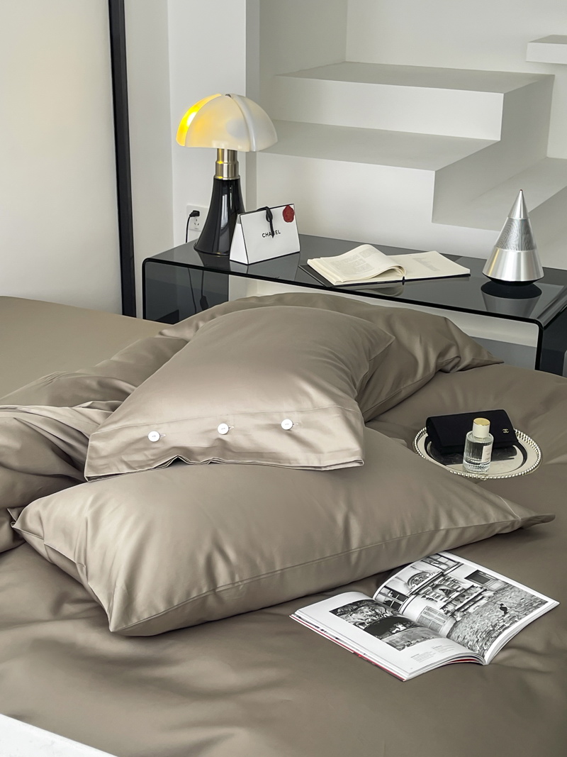 我们摒弃浮夸的印花与多余的装饰,回归面料最本真的魅力。面料一直是拿手的高精密60支(60×60)精梳紧密纺,密度做到(200×105)经由60支高密工艺精心织就。这意味着每平方英寸内交织的纱线更多更密,成就了面料丝滑、挺括且坚韧的质感。