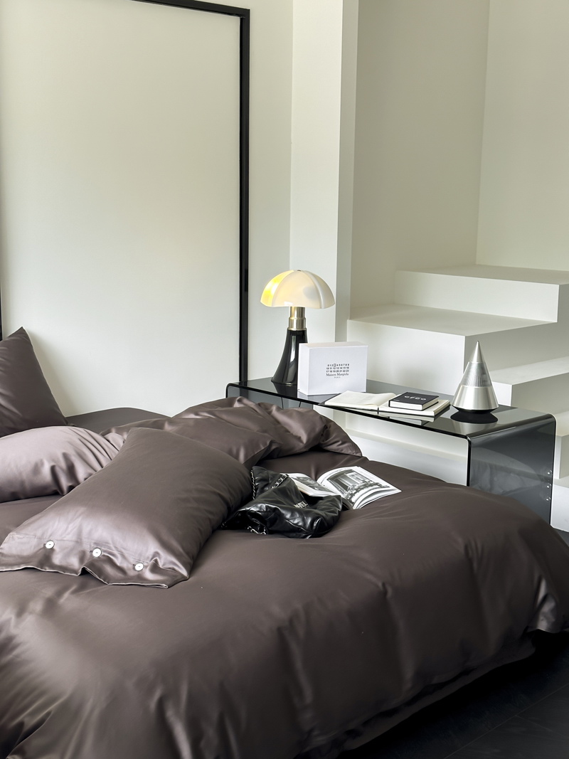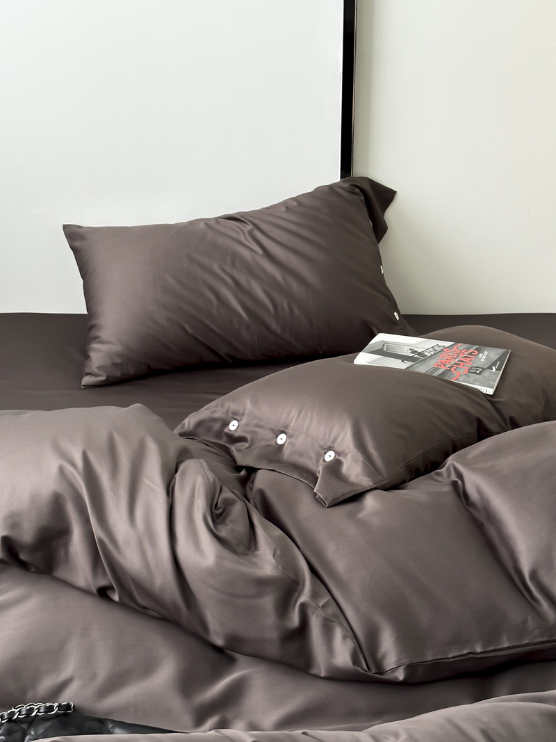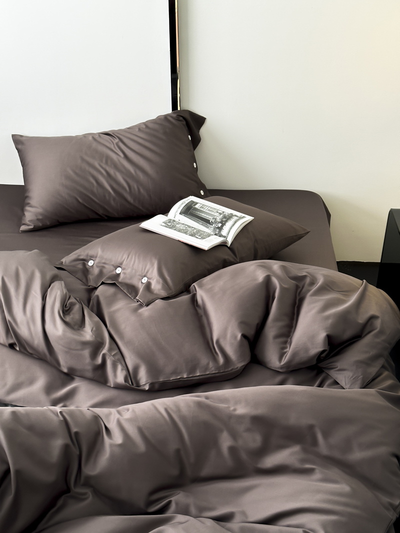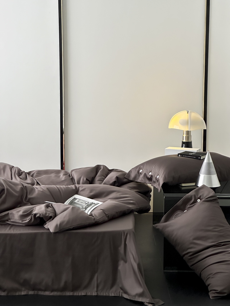 我们摒弃浮夸的印花与多余的装饰,回归面料最本真的魅力。面料一直是拿手的高精密60支(60×60)精梳紧密纺,密度做到(200×105)经由60支高密工艺精心织就。这意味着每平方英寸内交织的纱线更多更密,成就了面料丝滑、挺括且坚韧的质感。