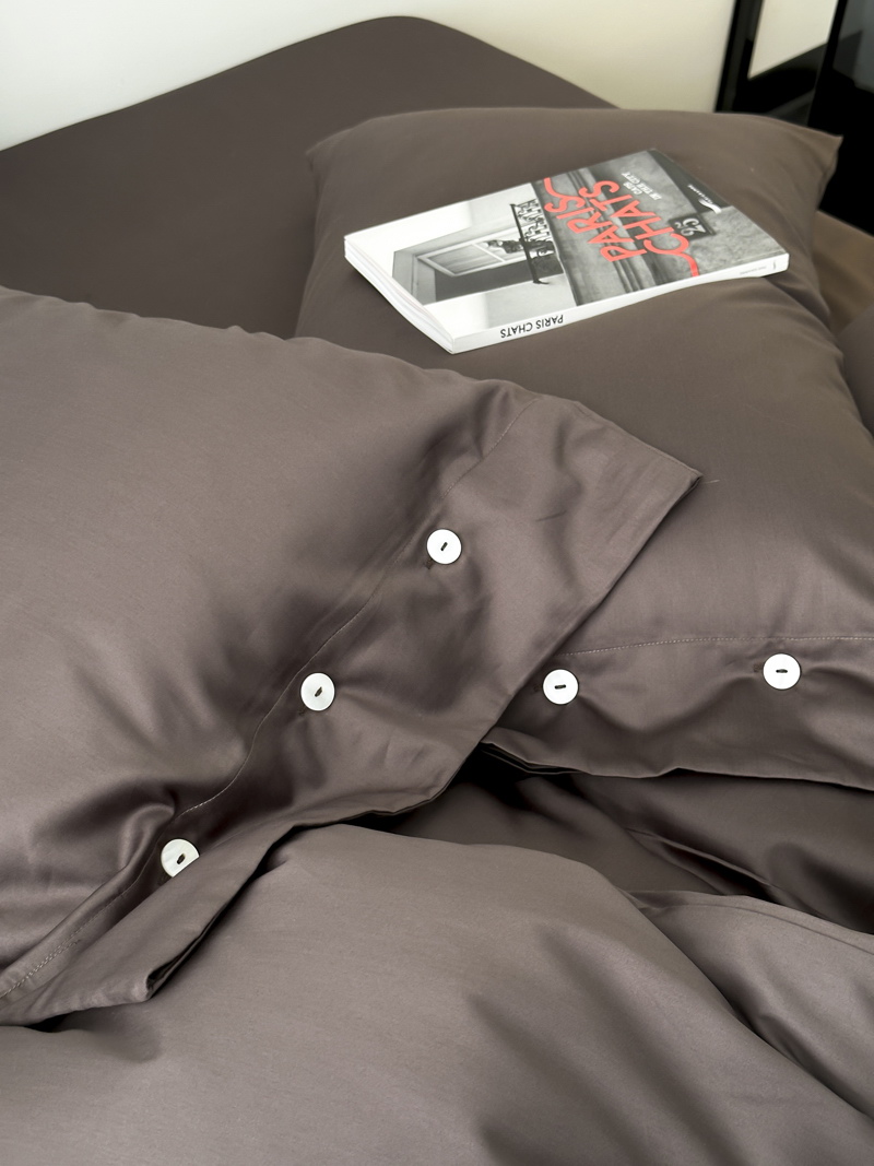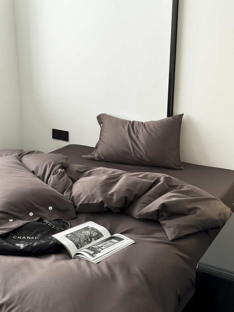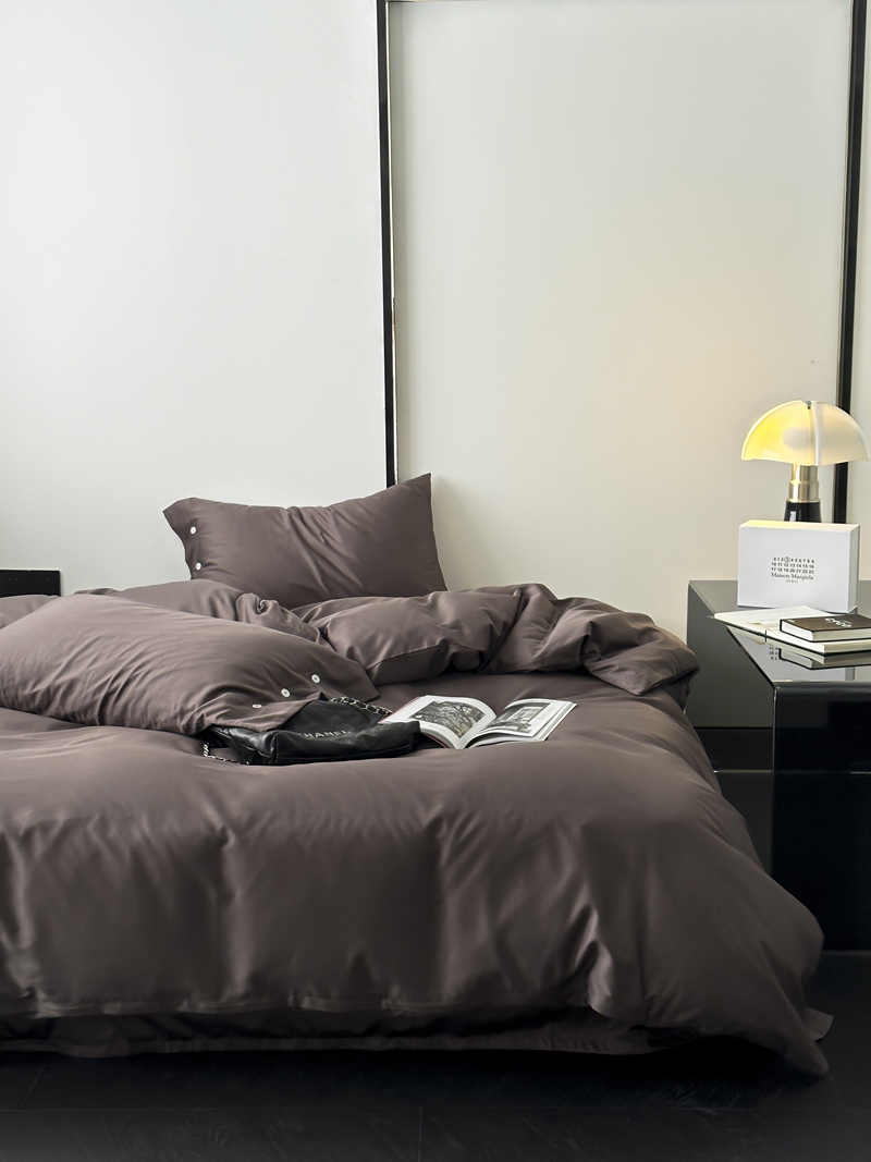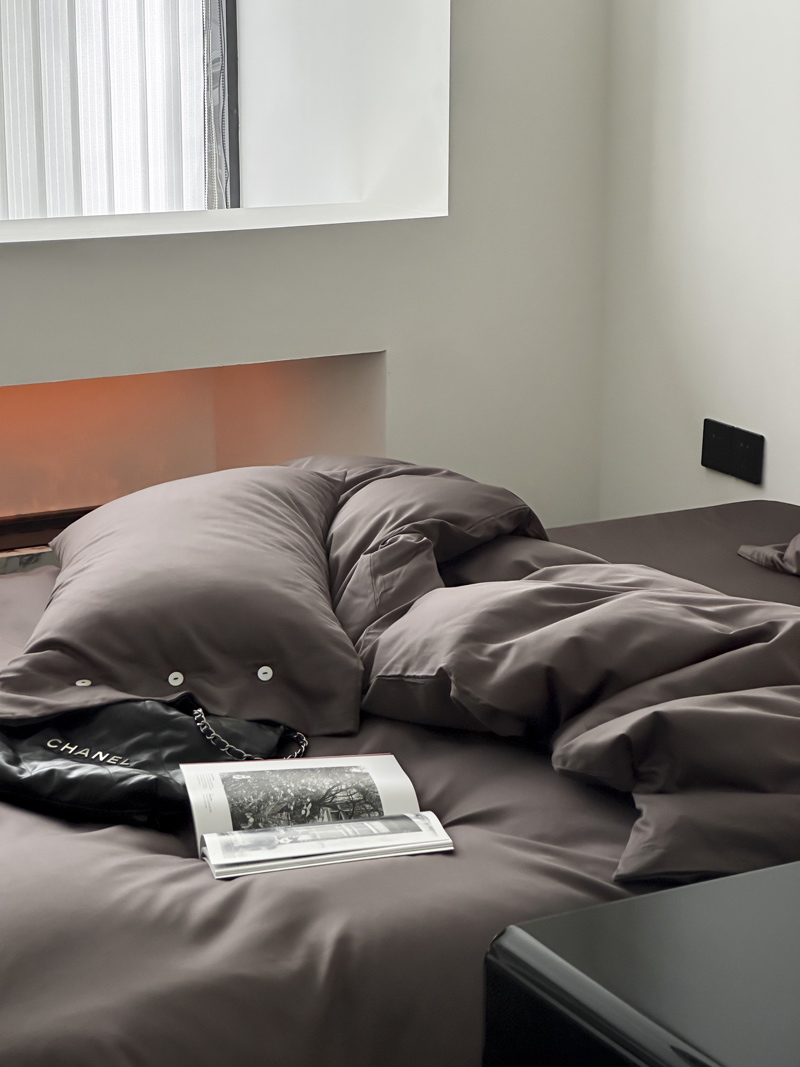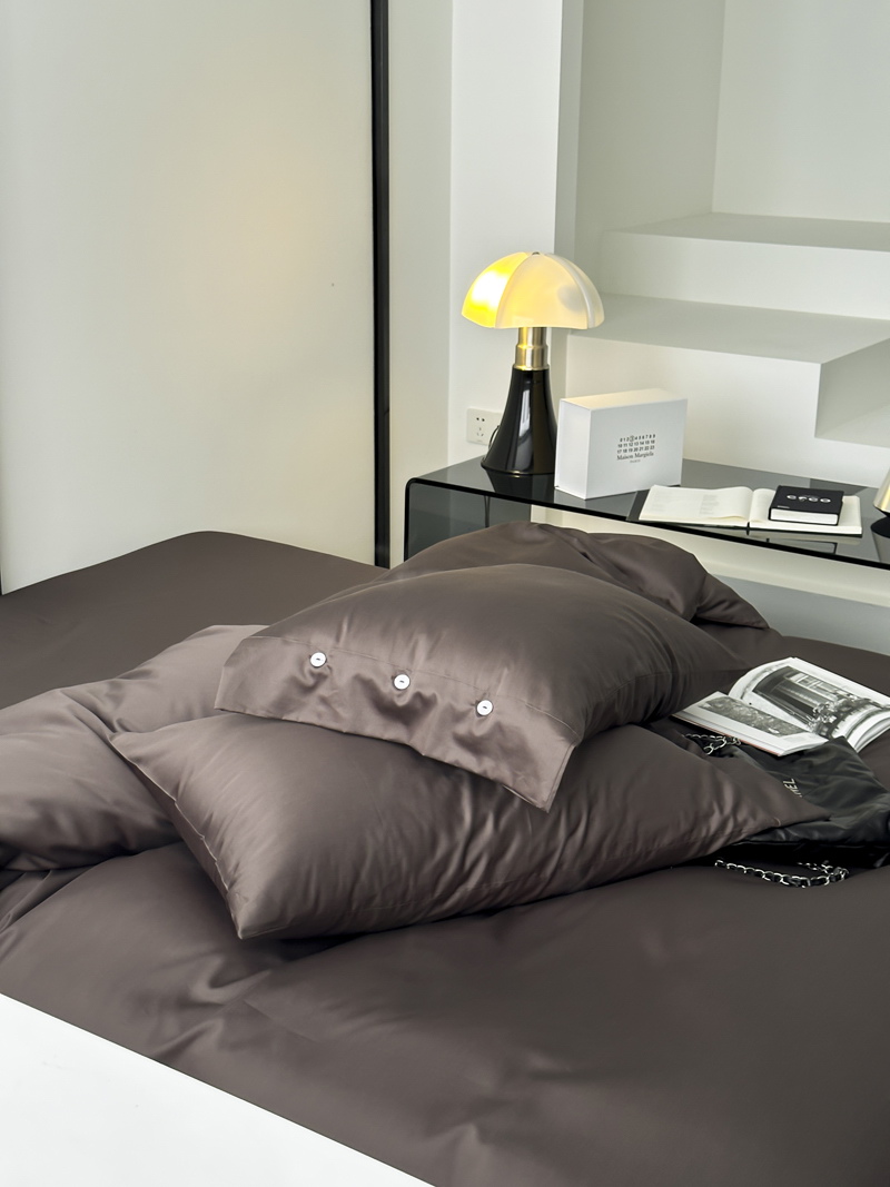 我们摒弃浮夸的印花与多余的装饰,回归面料最本真的魅力。面料一直是拿手的高精密60支(60×60)精梳紧密纺,密度做到(200×105)经由60支高密工艺精心织就。这意味着每平方英寸内交织的纱线更多更密,成就了面料丝滑、挺括且坚韧的质感。