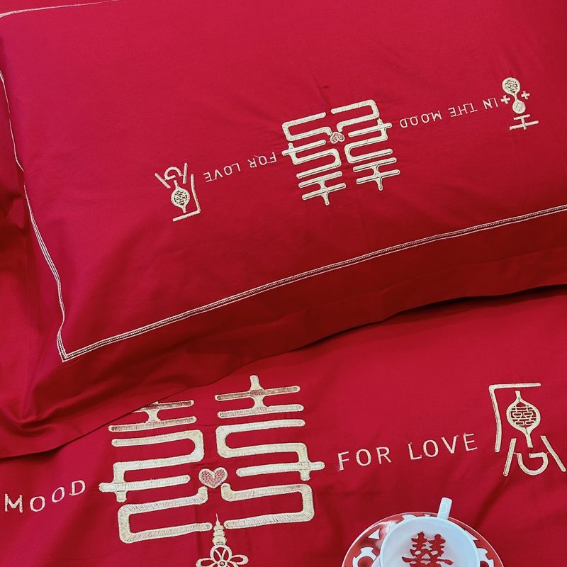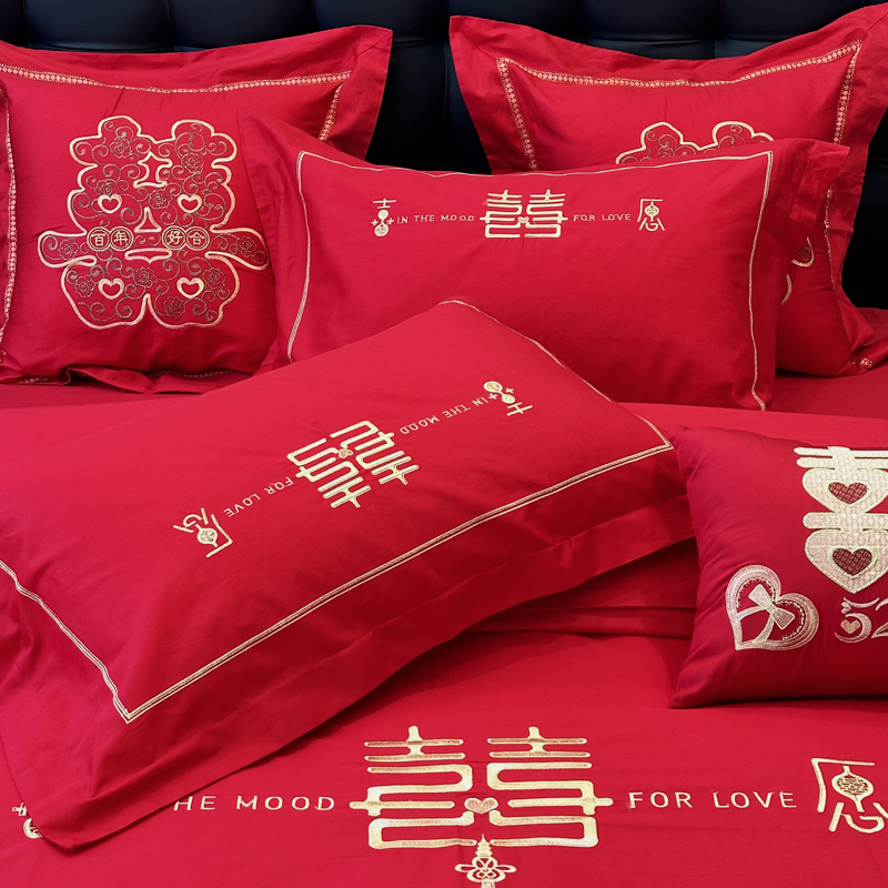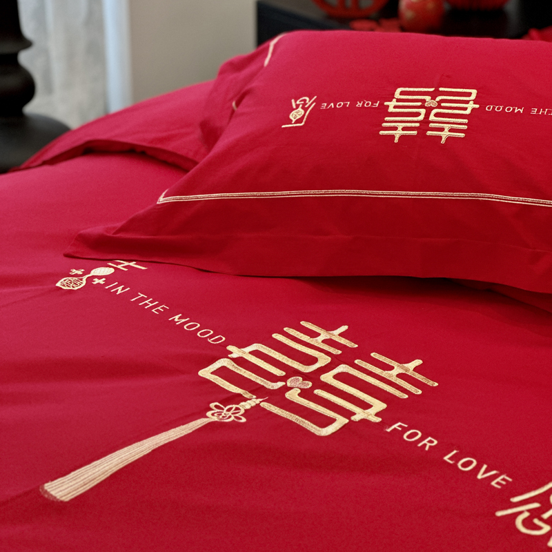 品名:全棉大红刺绣婚庆套件款