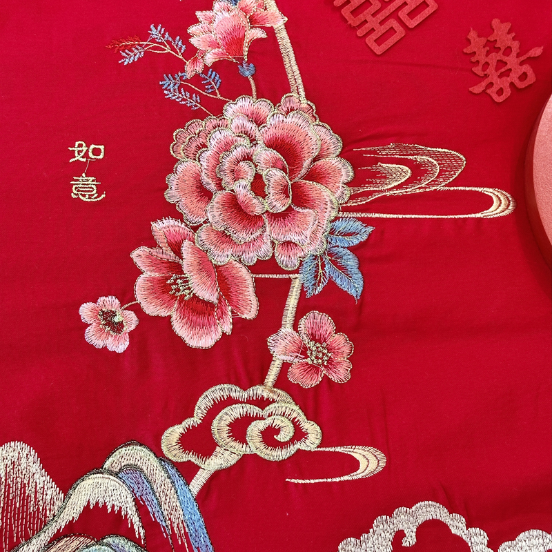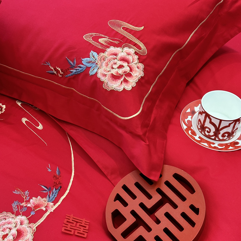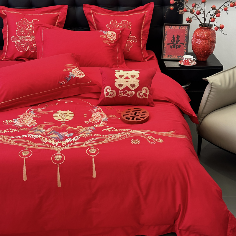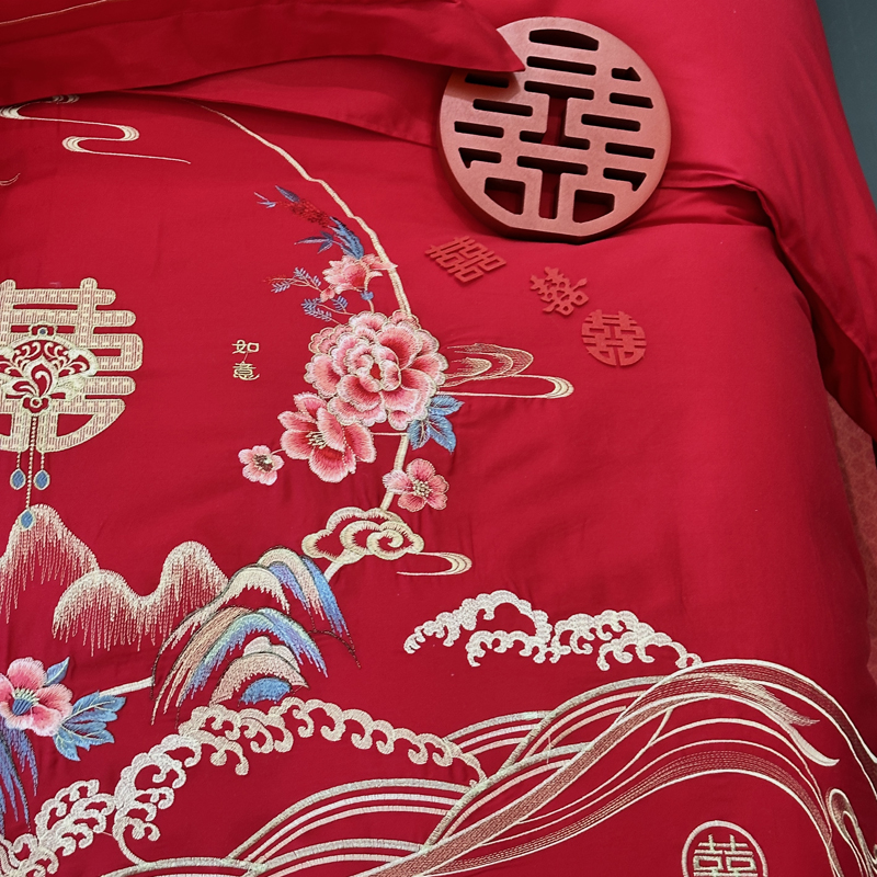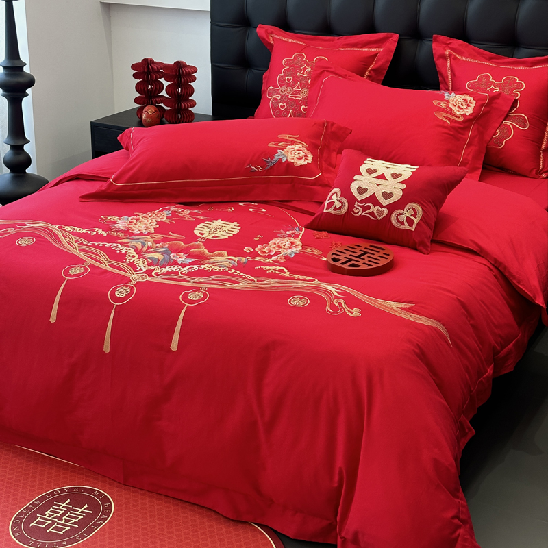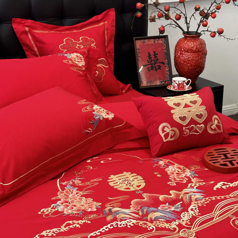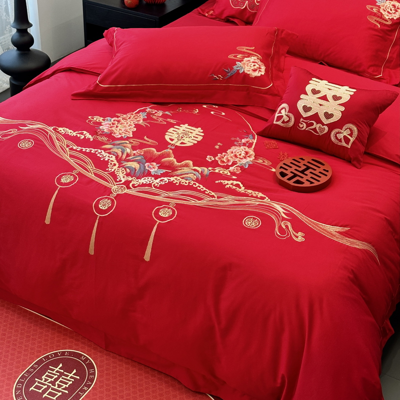 全棉大红刺绣婚庆套件-千禧之恋
