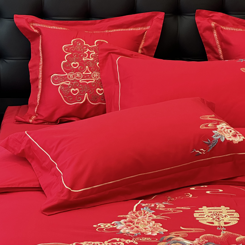 品名:全棉大红刺绣婚庆套件款